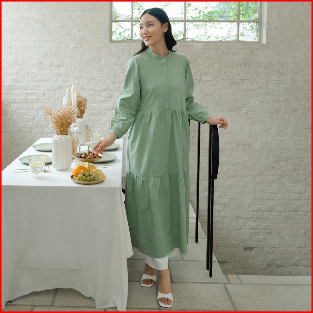Beatrice Clothing Ara Maxi Dress - Maxi Dress Polos Lengan Panjang Wanita