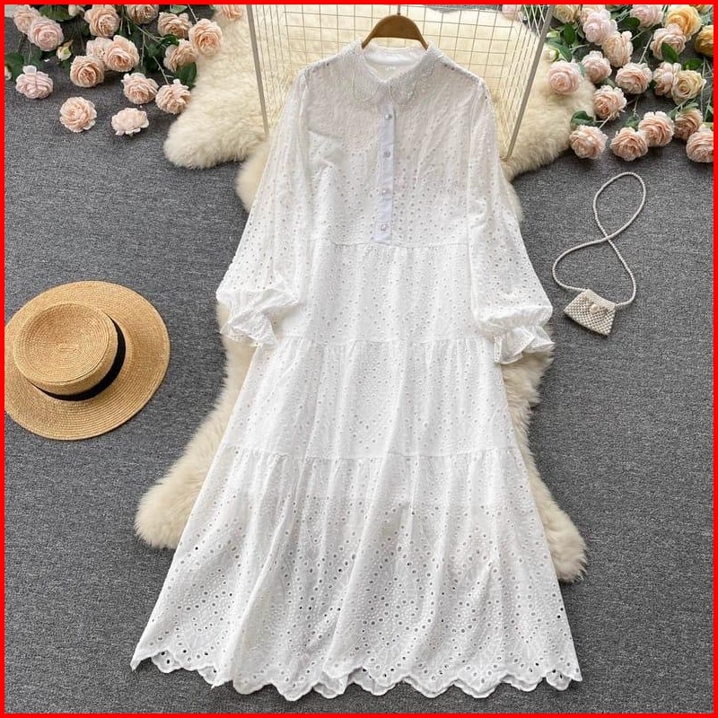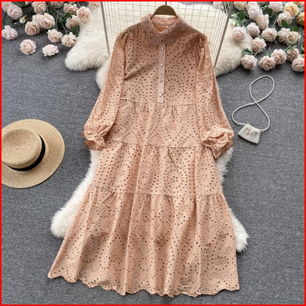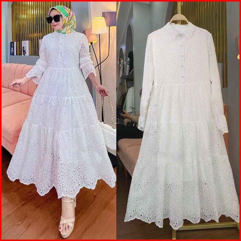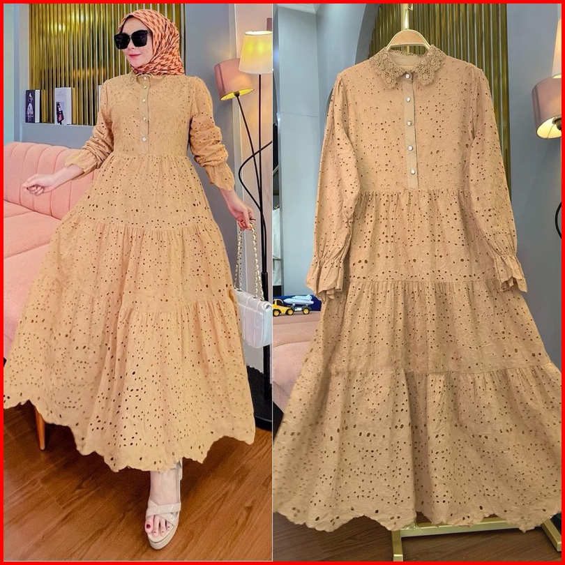 Restock Dress Maxi Zanalies Katbol Cotton Bolong Embroidered Busui Friendly