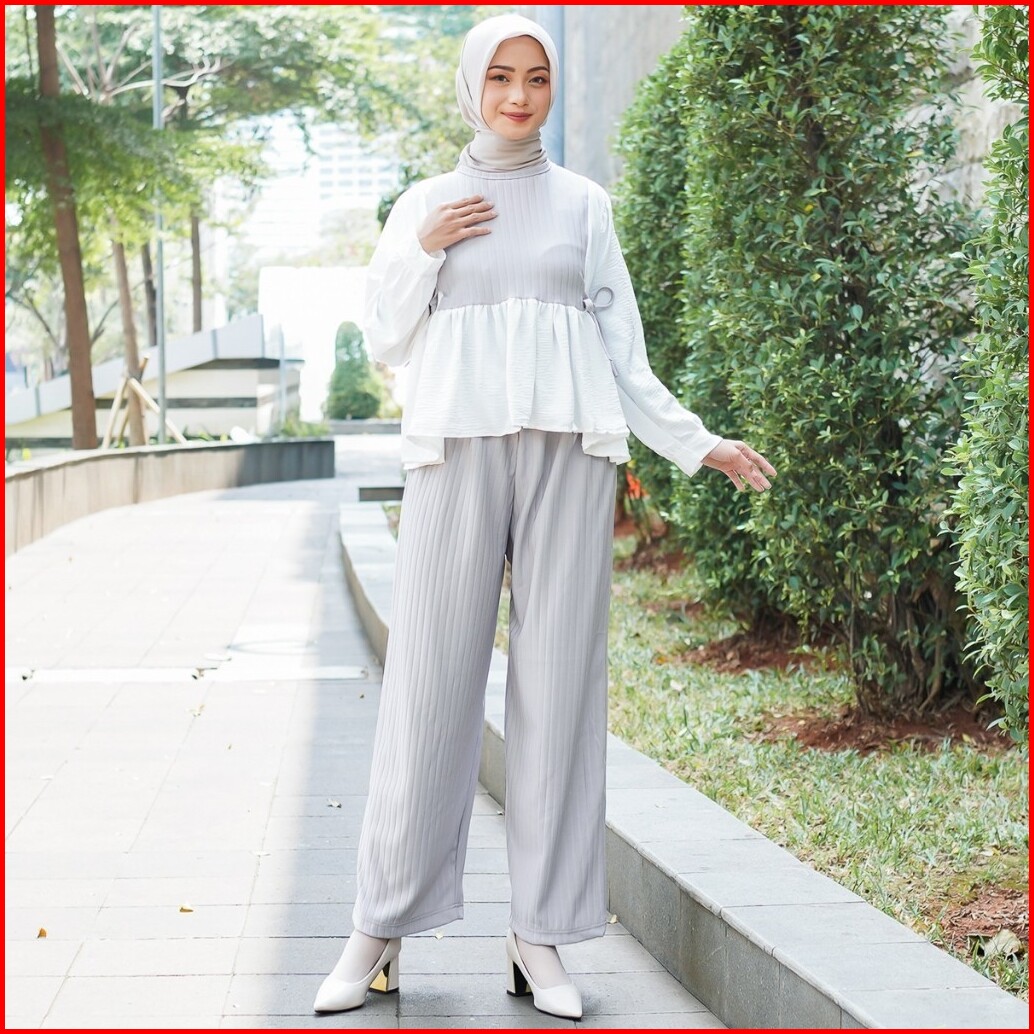 Najwa - Setelan Celana Panjang Wanita Fit Fira Combi Cringkle Hornet Knit Casual Premium