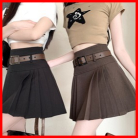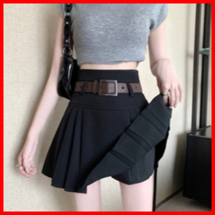 Premiummini Pleated Skirt Trendy High Waist Autumn With Belt 3115 M L Xl