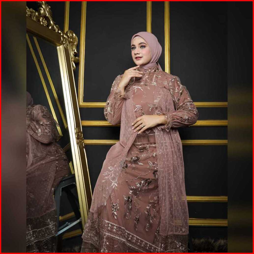 Gamis Pesta Premium Gisella Full Tile Brokat 2024 Full Tile Untuk Wisuda Kondangan Simple Dan Mewah