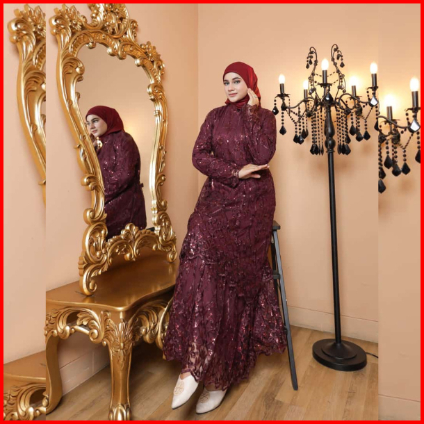 Meera Chelin Brukat Payet Elegant Mewah Maxi Dress Ld Jumbo 120 Gamis Pesta Tile Lebaran Premium Produk Muslim Terbaru W