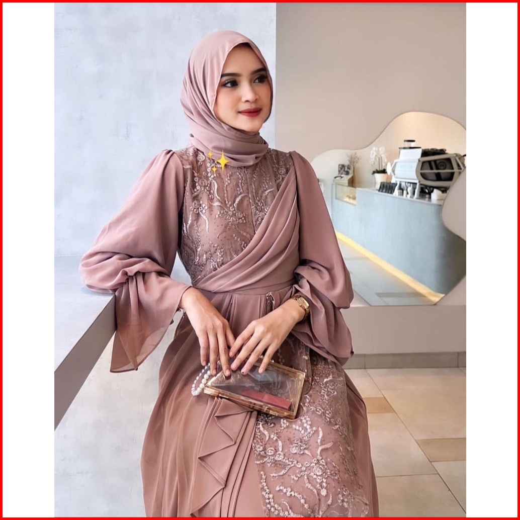 R.a - Melisa Dress Gamis Muslim Wanita Full Puring Matt Ceruty Babydoll Mix Brukat Ootd Kondangan Fashion Terlaris