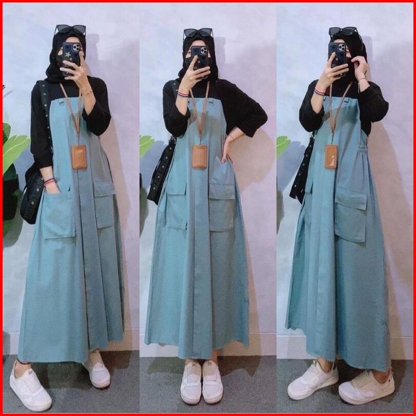 Vallina Outfit - Belly Dress Maxy Wanita Muslim Katun Rami Polos Basic Premium Ootd Korean Style