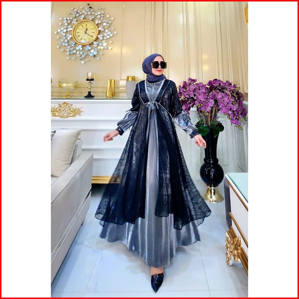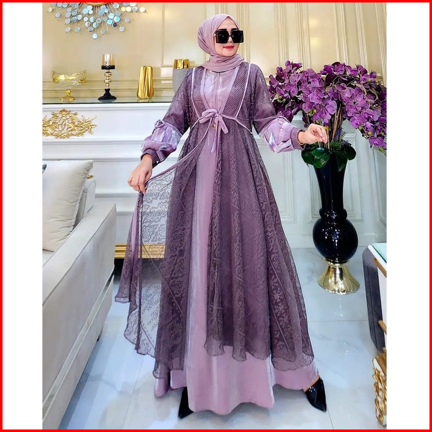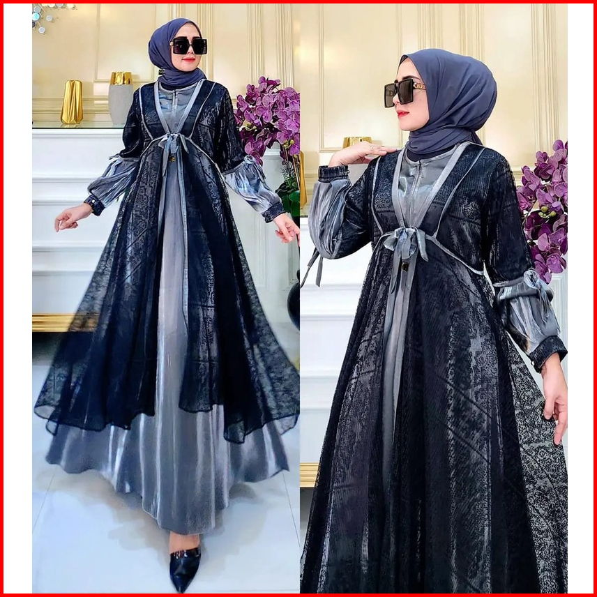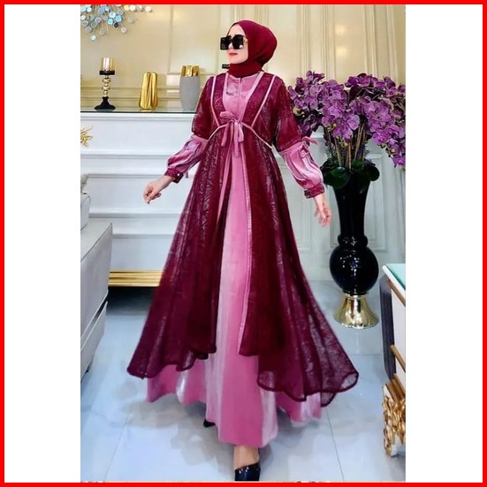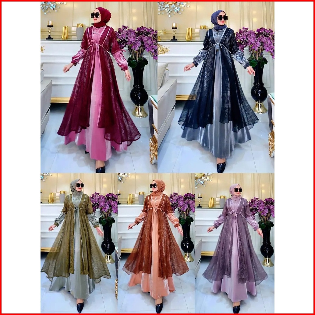 R.a - Talitha Maxy Wanita Remaja Muslim Matt Shimmer Mix Brukat Premium Ootd Gaun Pesta Kondangan Fashion Terlaris