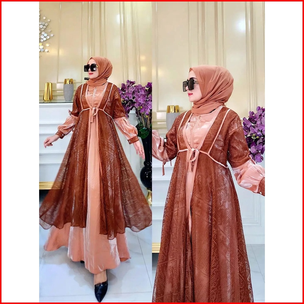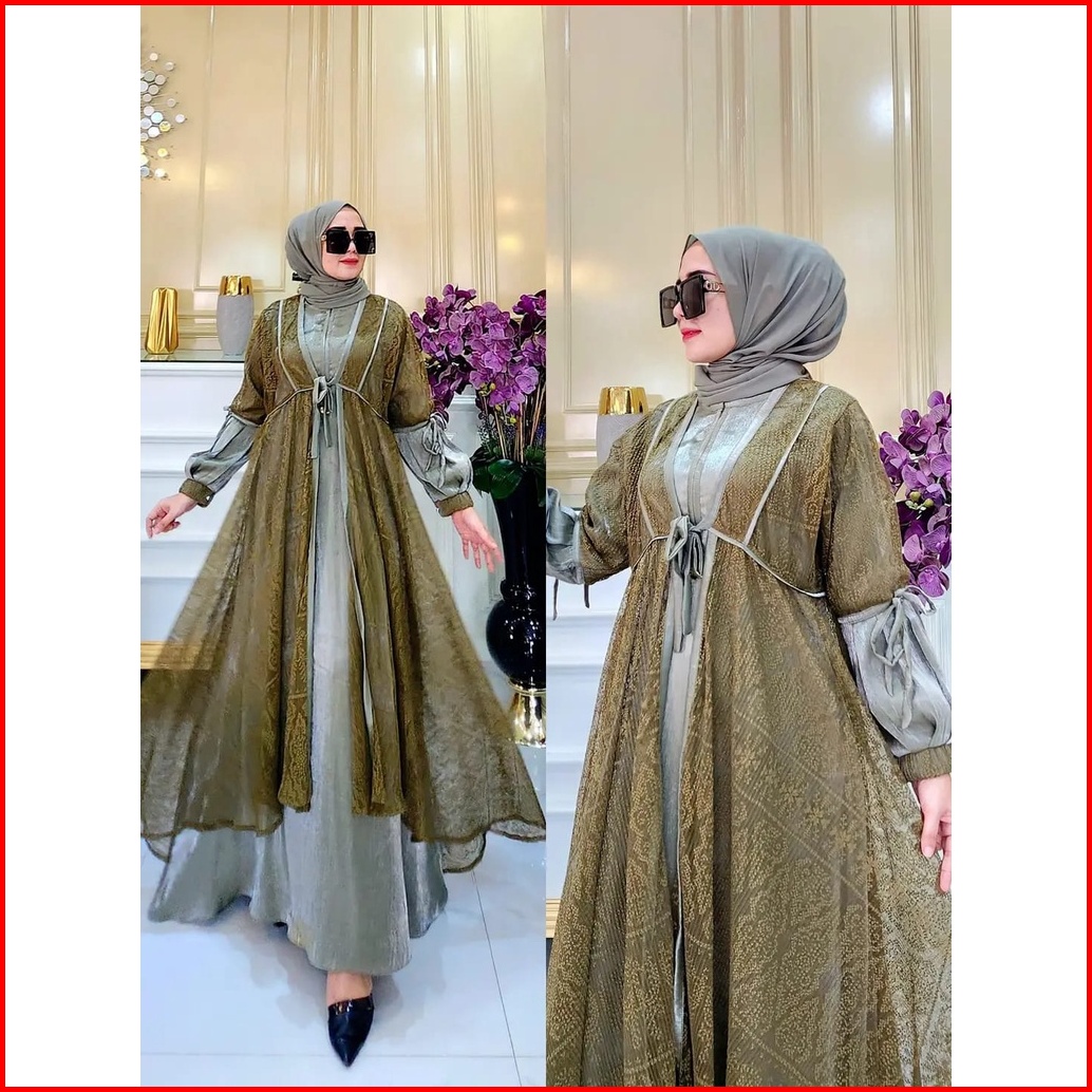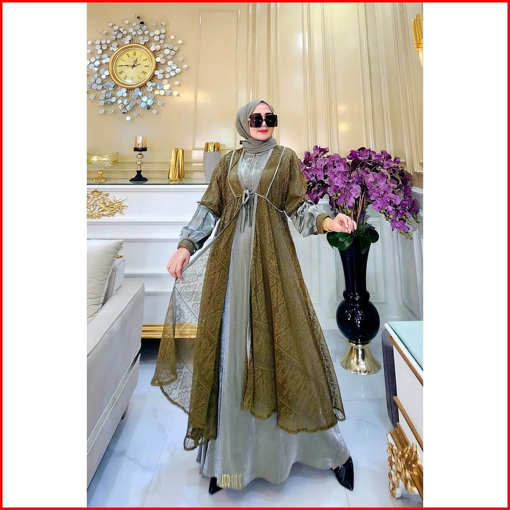 R.a - Talitha Maxy Wanita Remaja Muslim Matt Shimmer Mix Brukat Premium Ootd Gaun Pesta Kondangan Fashion Terlaris