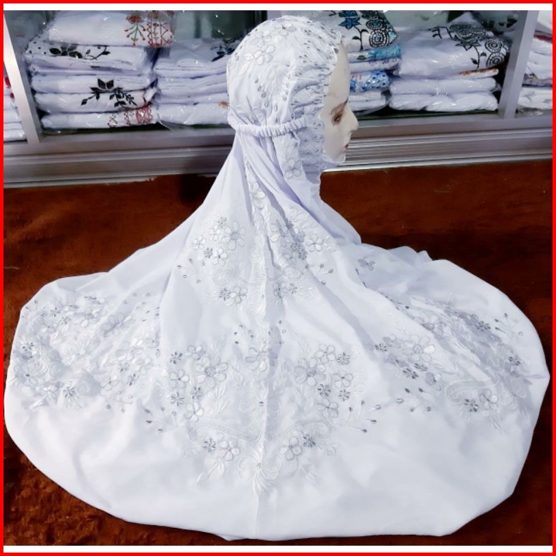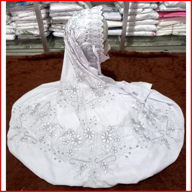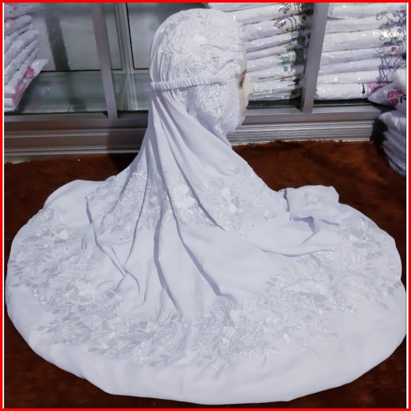Mukena Bordir Putih Kain Katun Polino Grade A Premium