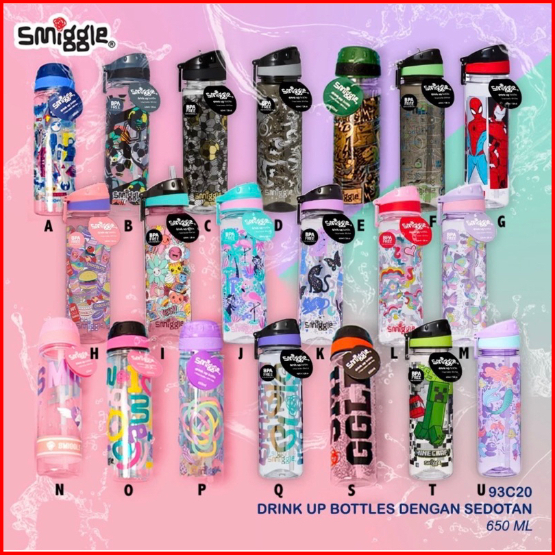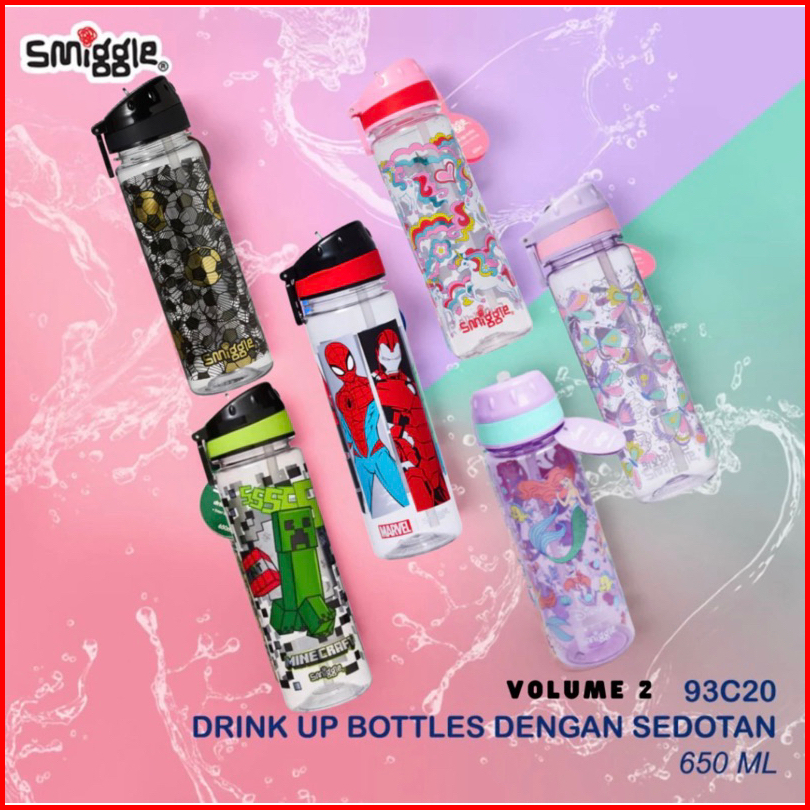 Botol Minum Anak Smiggle Import Drink Up Bottle Sedotan 650ml - Go Central