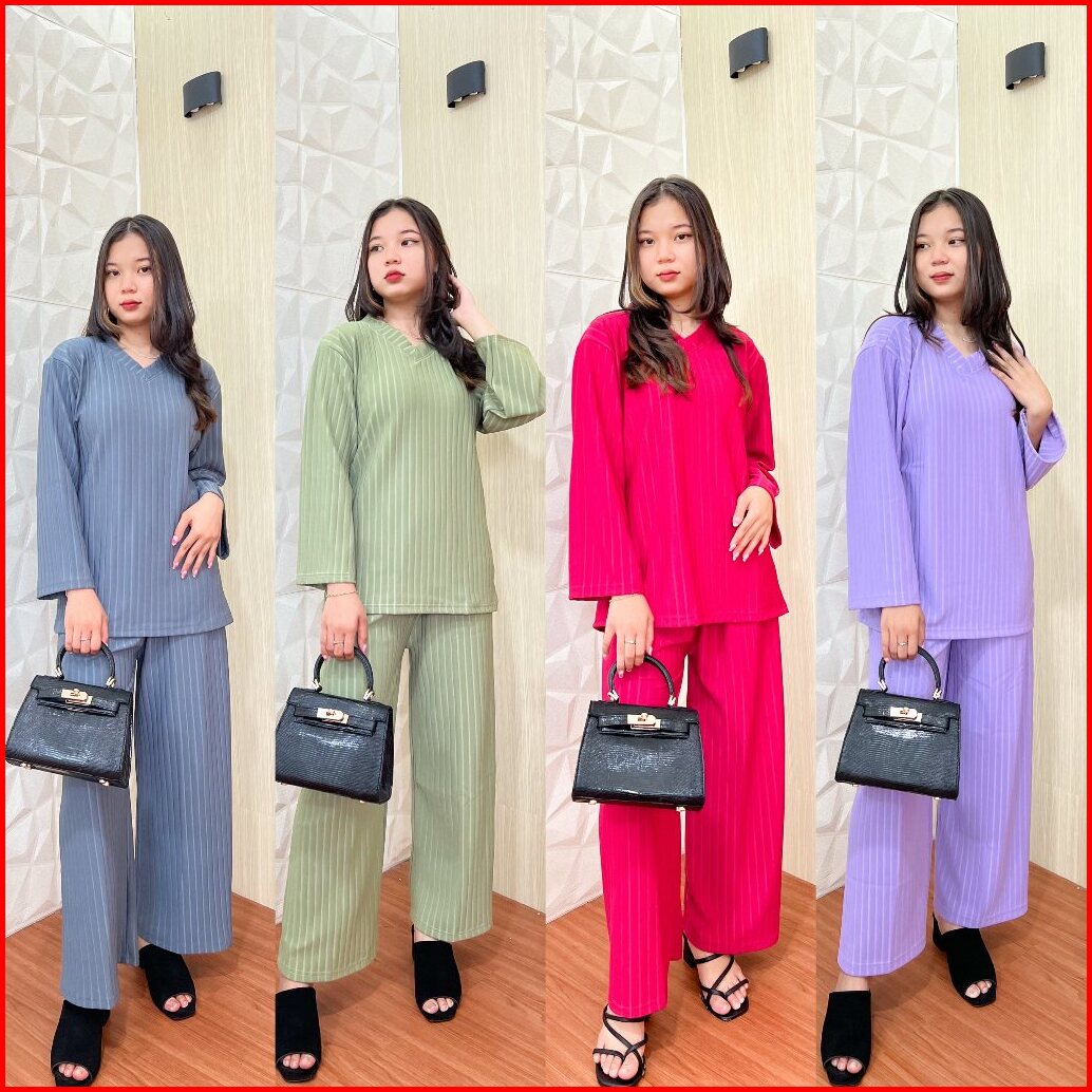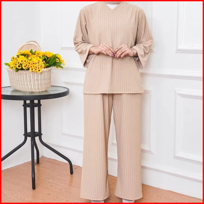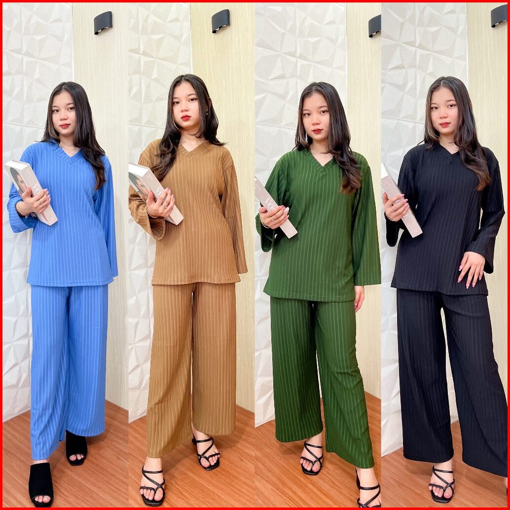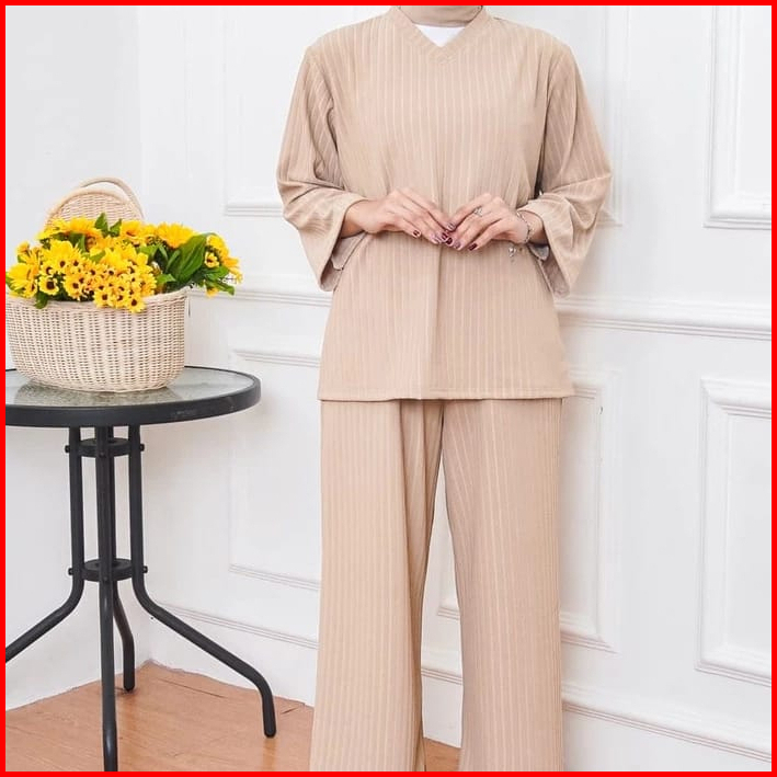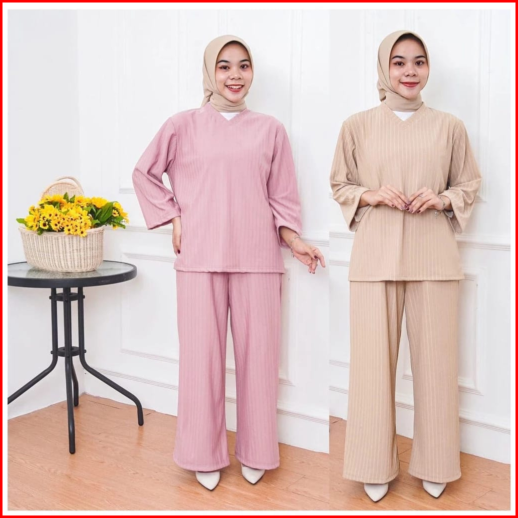 Livy Oneset V-neck Setelan Wanita Bahan Knit