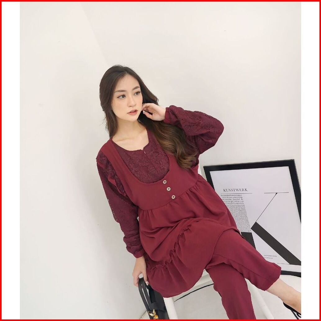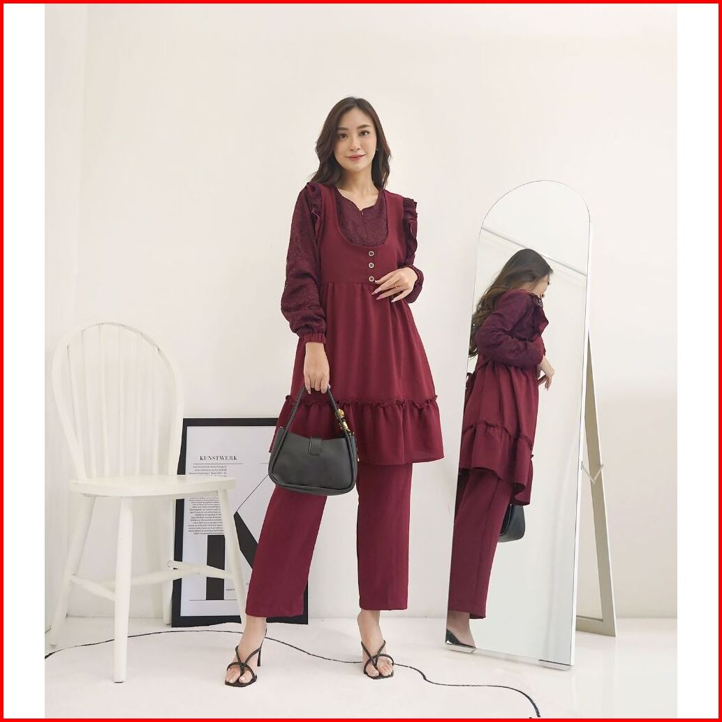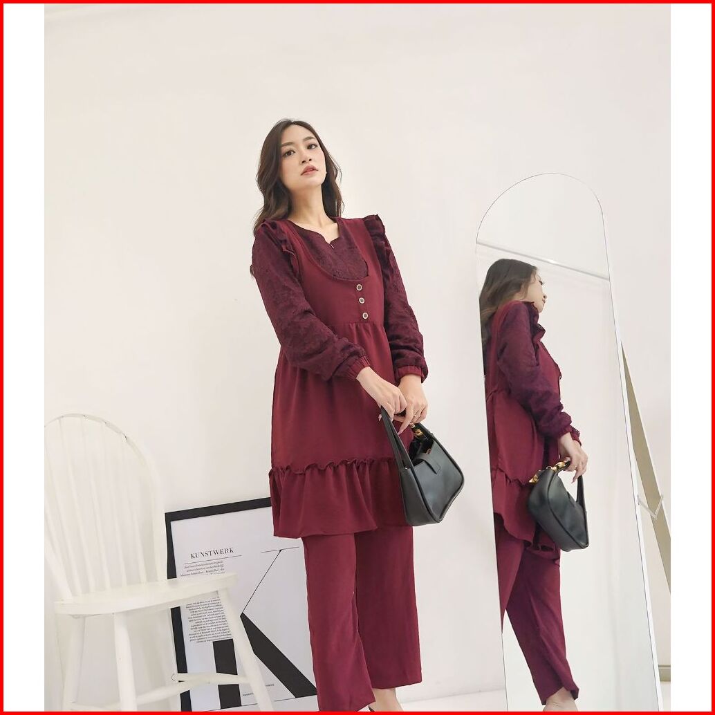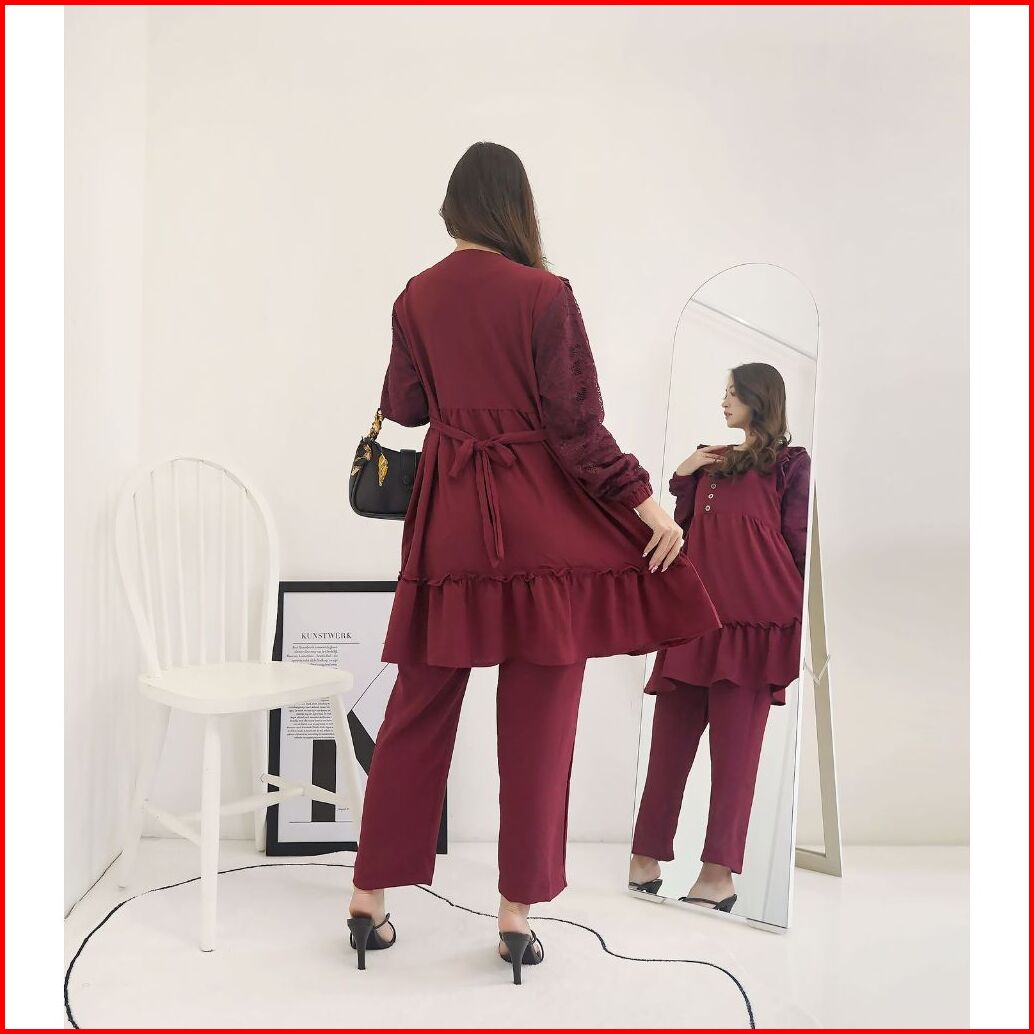 Setcel Crinkle Rania Long Tunik Stelan Polos Airflow Abg Murah Grosir Pesta Mewah Renda San Modellano