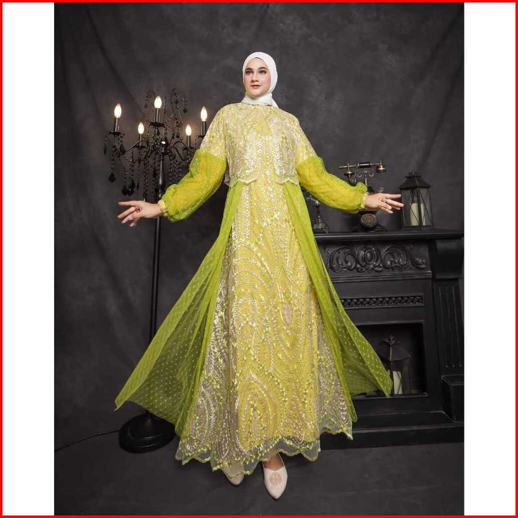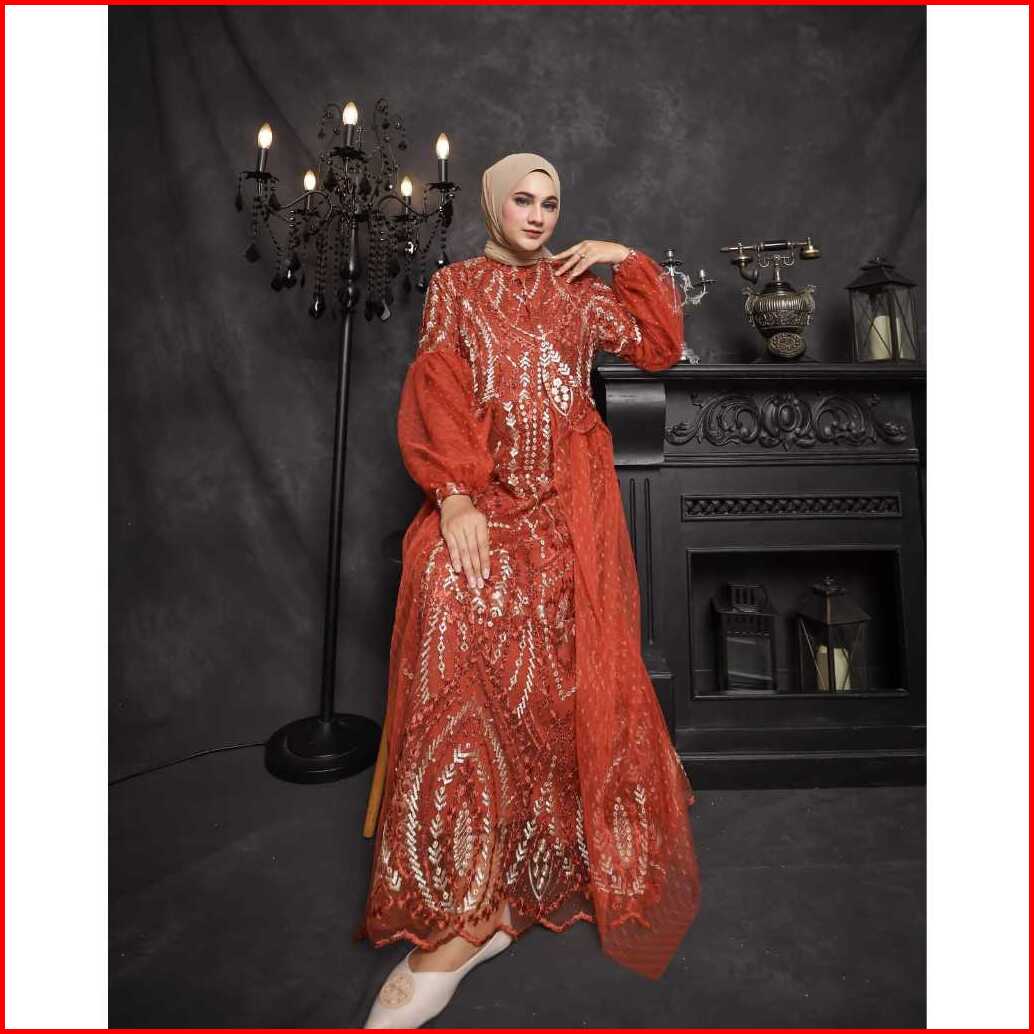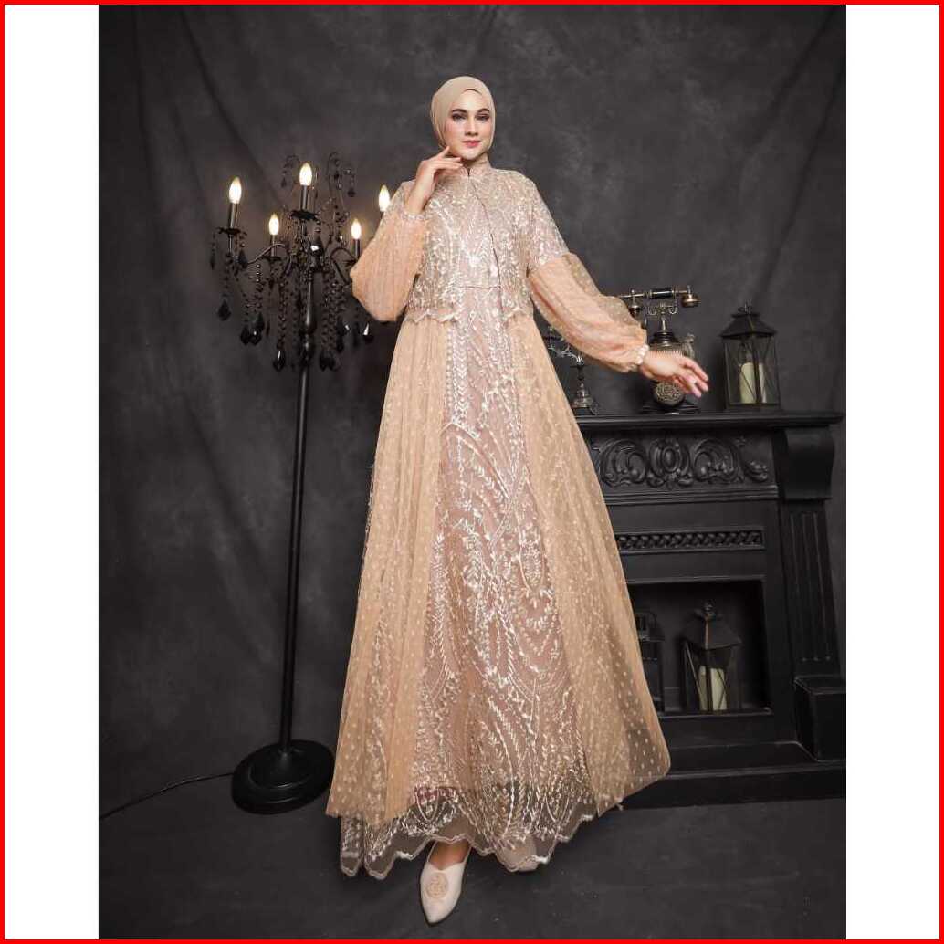 Meera Larissa Elegant Lebaran Premium Maxi Elegan Kekinian Ld 110 Gamis Produk Wanita Brokat Tile Muslim Payet Bahan Dre