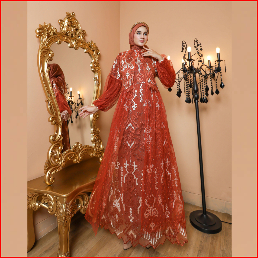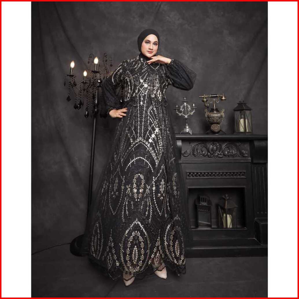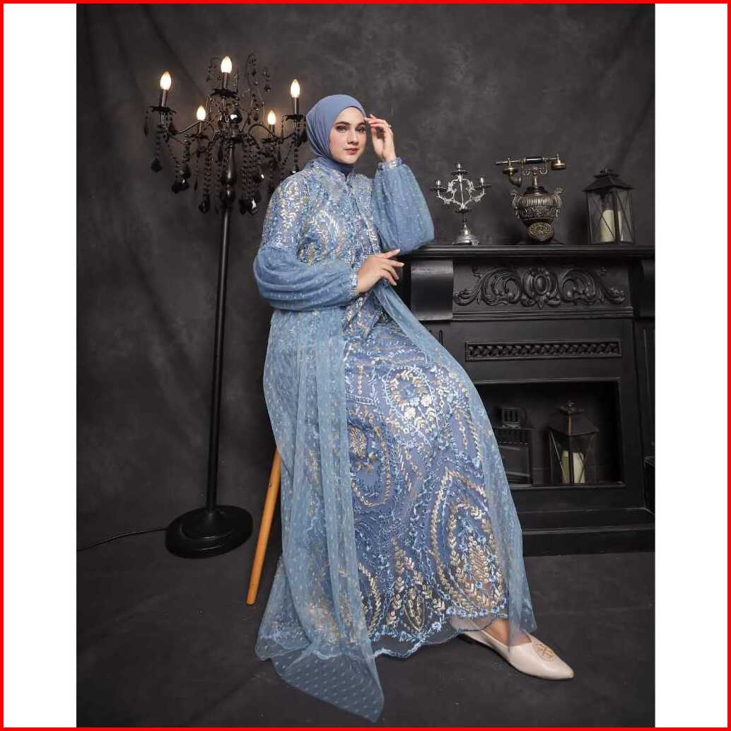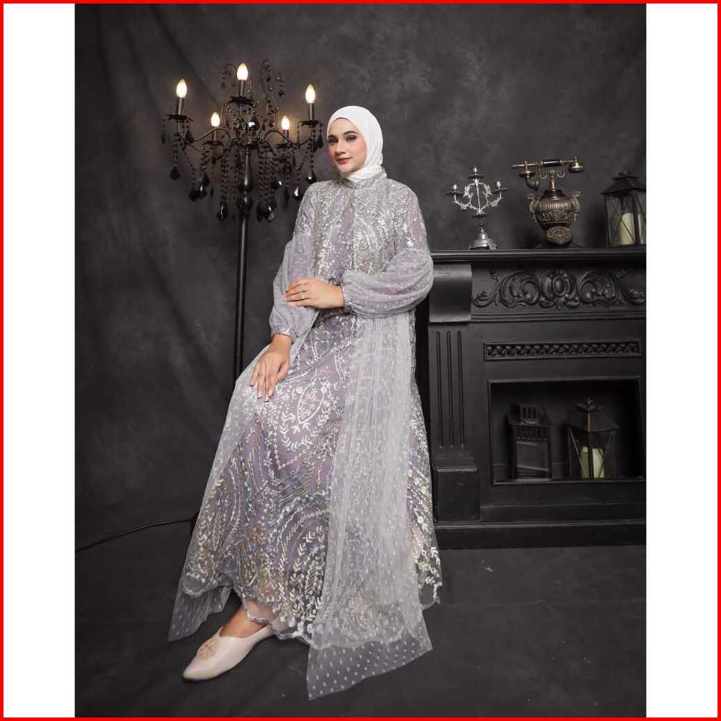 Meera Larissa Elegant Lebaran Premium Maxi Elegan Kekinian Ld 110 Gamis Produk Wanita Brokat Tile Muslim Payet Bahan Dre