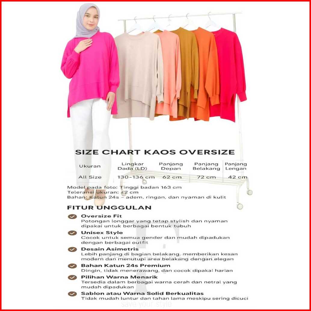 Kaos Tunik Wanita Oversize Ld130 Lengan Panjang Atasan Wanita Jumbo Ld130 Lengan Panjang Baju