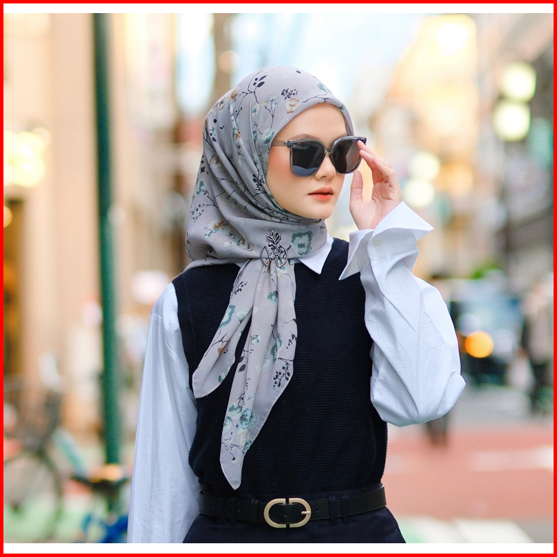 Koyu Hijab Segiempat Viney Jepang Beauty Flower Japan Series Ii