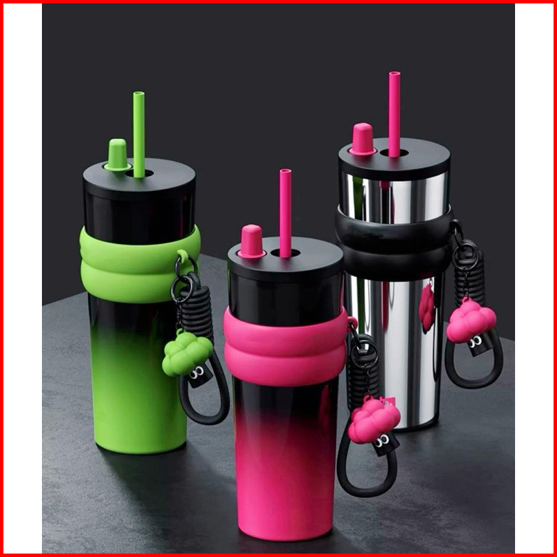 Botol Tumbler Stainless Gradasi 710ml Termos Tumbler Stainless 710ml Free Sedotan Gantungan Boneka Tutup Sedotan