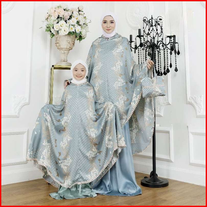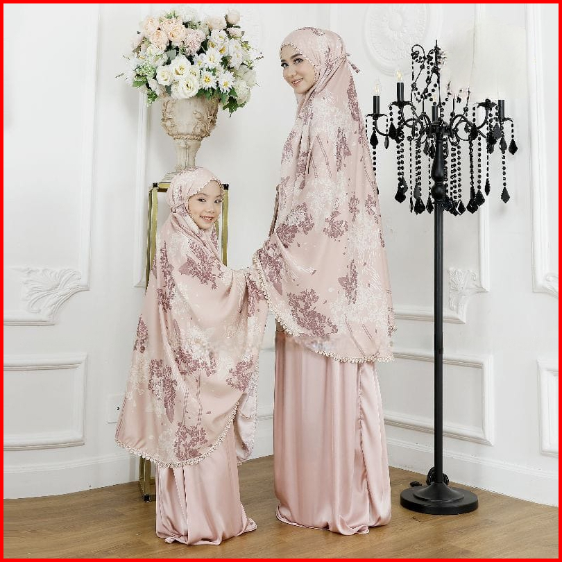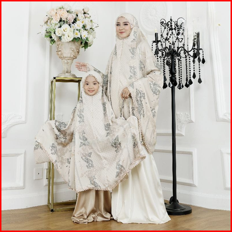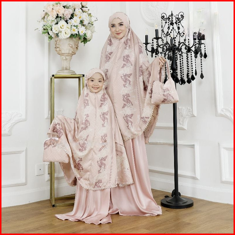 Bc-mukena Couple Ibu Dan Anak Bahan Silk 2in1 Kombinasi Renda Motif Armania Silk