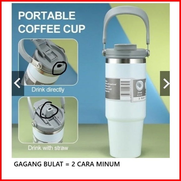 Tumbler Handle Botol Bpa Free Vacuum Insulated Stainless Steel 304 Premium Quality 890ml