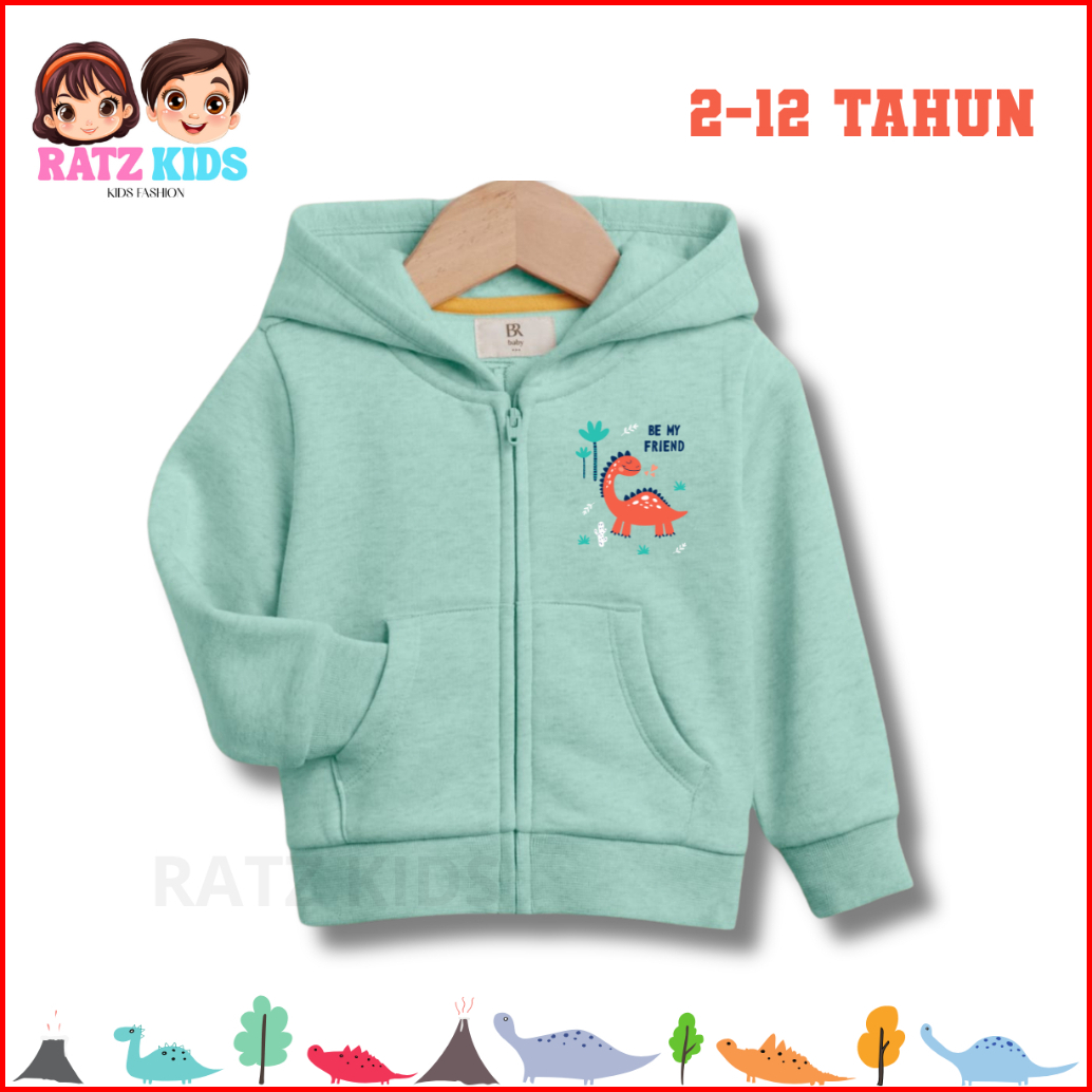 Jaket Anak Laki Laki Model Zipper Dinosaurus Umur 2-12 Tahun Sweater Cewek Cowok