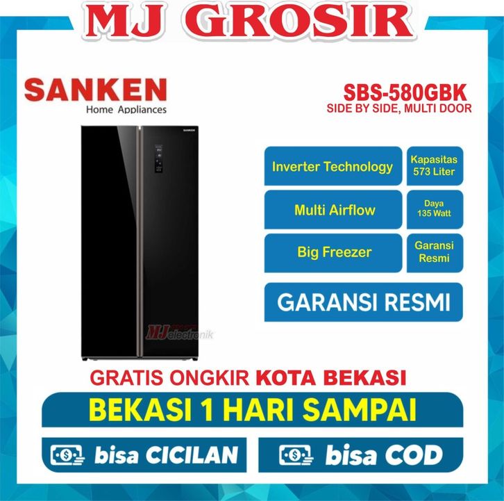 KULKAS SANKEN SBS 580 GBK LEMARI ES SBS-580GBK SIDE BY SIDE