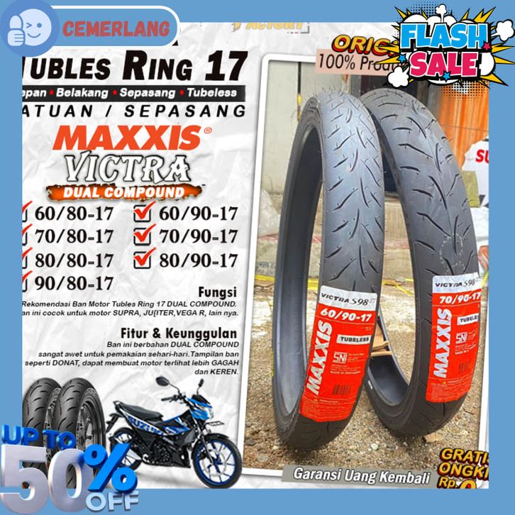 BAN MOTOR TUBLES MAXXIS RING 17 BAN MOTOR DEPAN BELAKANG BEBEK VIXION NINJA RING 17 TUBLES BAN MAXXIS VICTRA RING 17