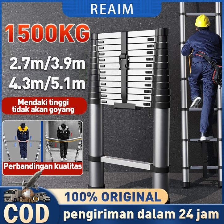 Tangga Lipat Aluminium Teleskopik 3.8 Meter / 4.4 M Single Telescopic Ladder 3.8 Meter / 4.4 Meter