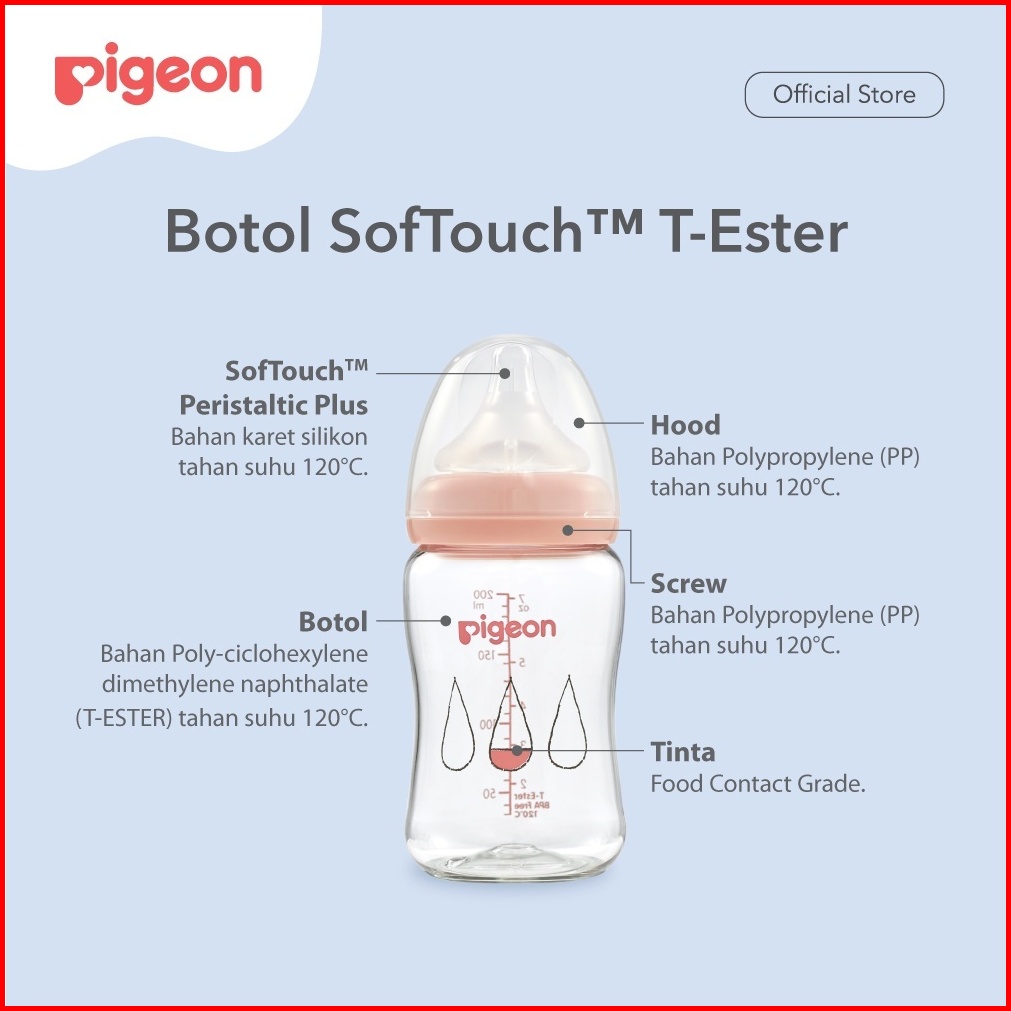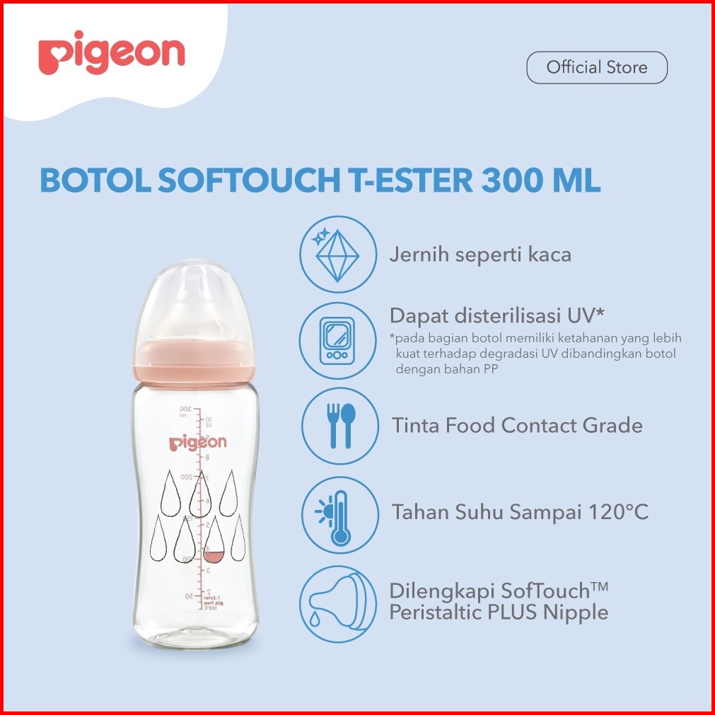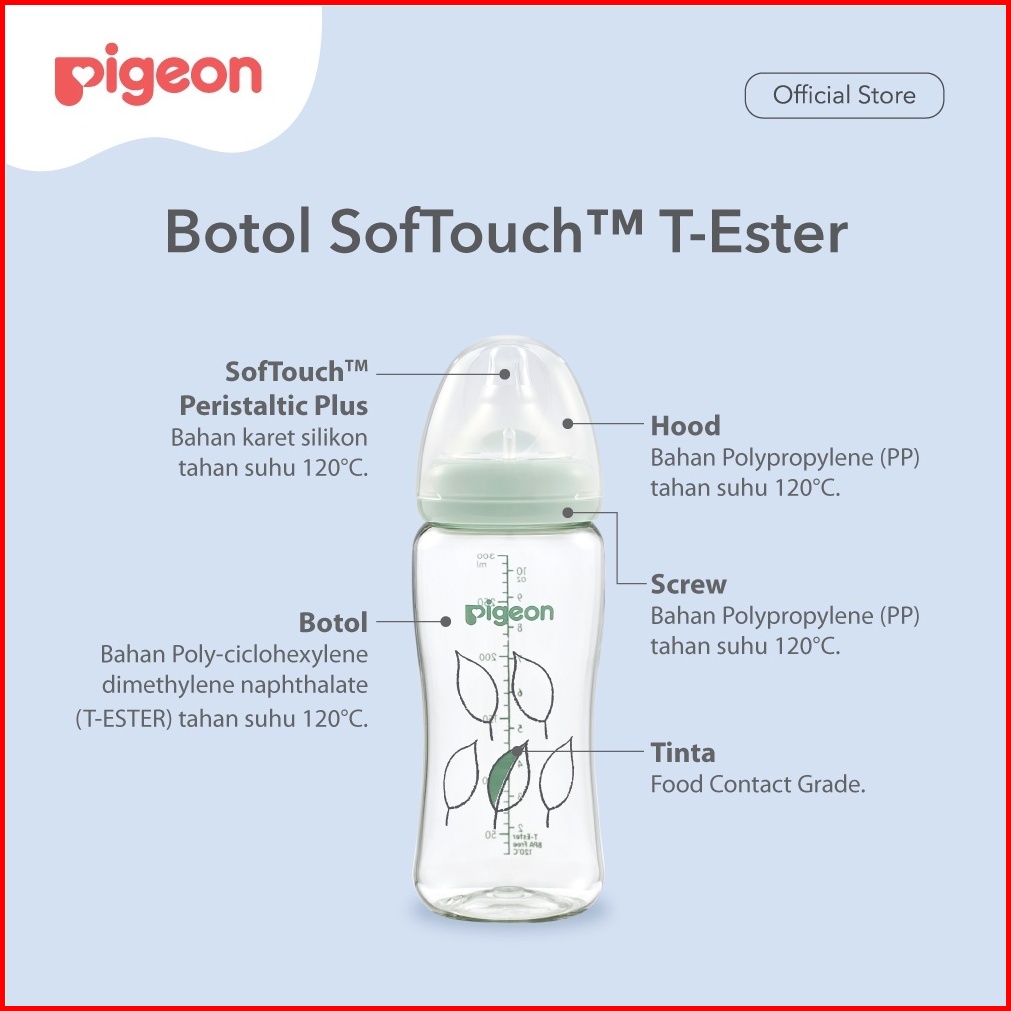 Pigeon Botol T-ester Wide Neck W P-plus Nipple Botol Susu Bayi 200ml 300ml