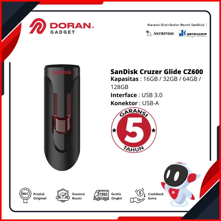 Flashdisk Flash Disk 16gb 32gb 64gb 128gb 16 32 64 128 Gb Sandisk Glide Cz600 - Garansi 5 Tahun