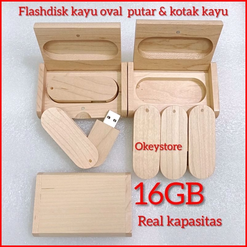 Flashdisk 8gb 16gb 32gb Kayu Oval Putar Kotak Kayu Upslide Real Kapasitas