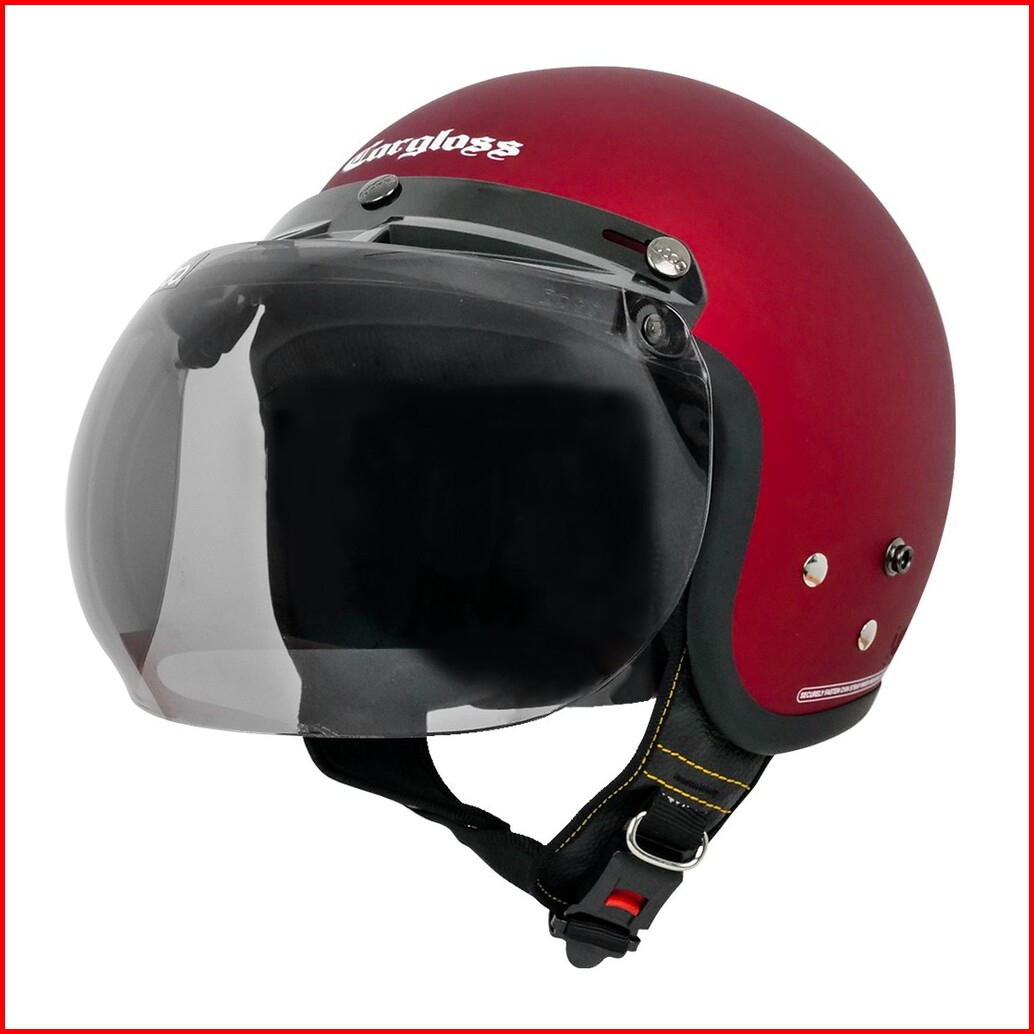 Cargloss Cfm Retro Visor Cembung Smoke Helm Half Face - Deep Red Met Doff