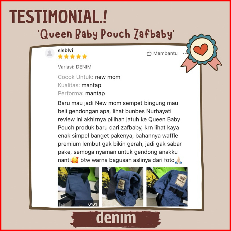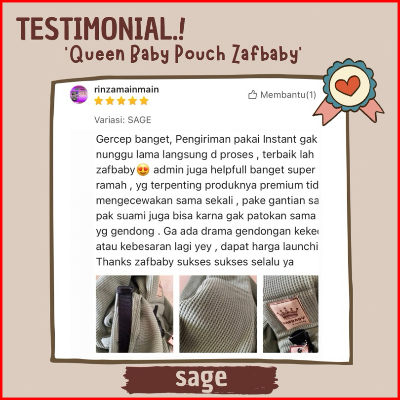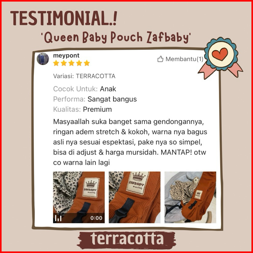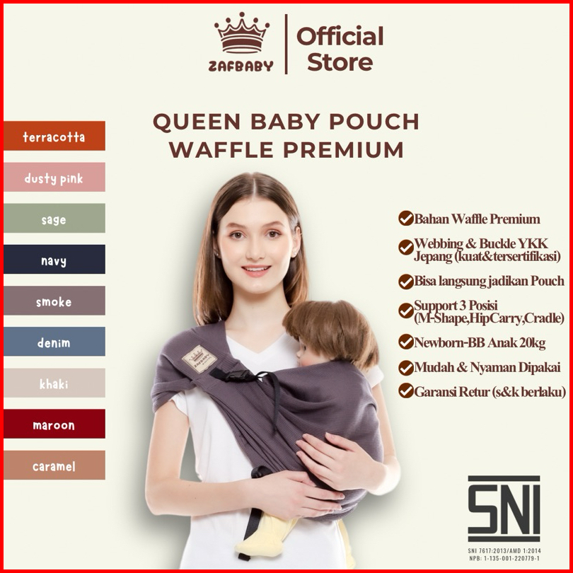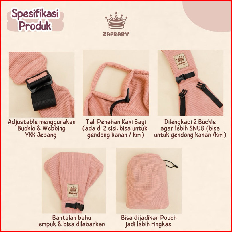 Zafbaby Queen Baby Pouch Gendongan Bayi Premium Adjustable Mshape Newborn Waffle Baby Pouch Berkualitas