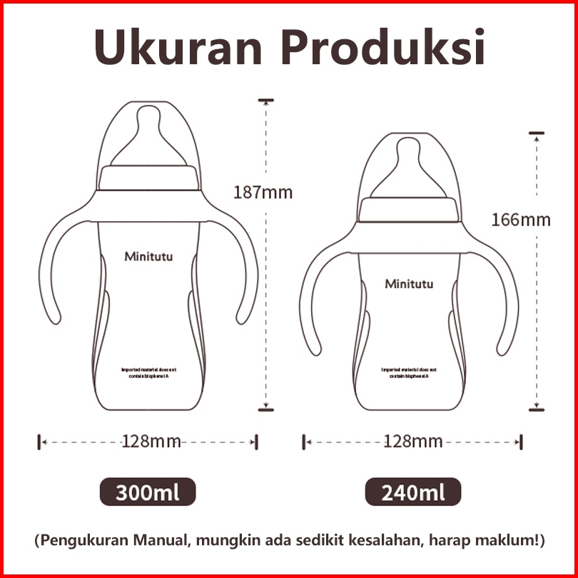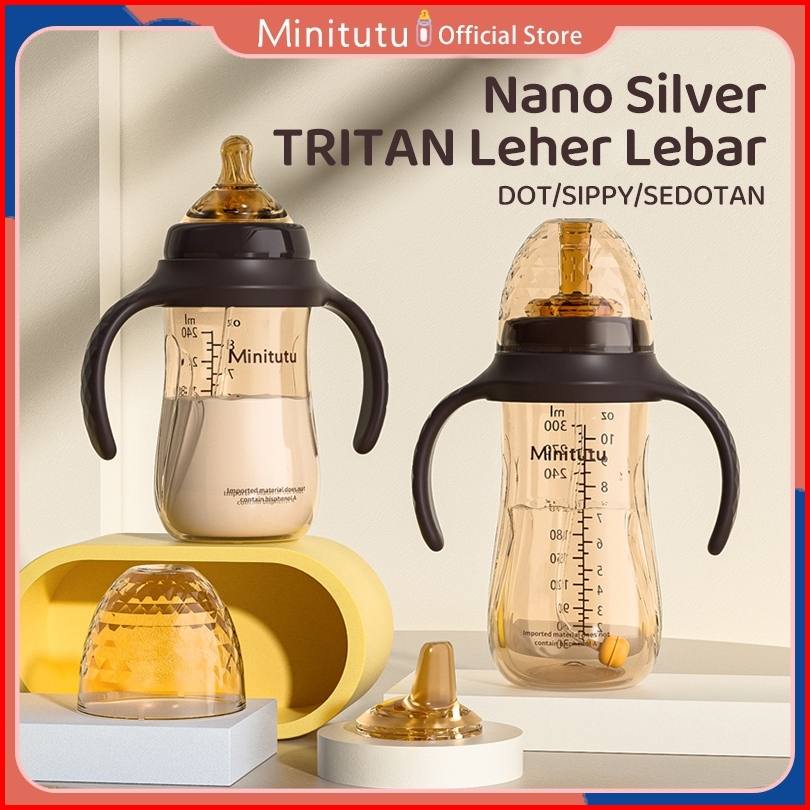 Minitutu Nano Silver Botol Susu Bahan Tritan 3 In 1 Leher Lebar 240ml 300ml Untuk Bayi Anti Kolik Bebas Bpa