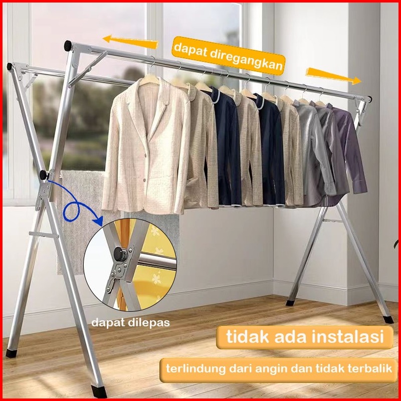 Jemuran Baju Lipat 5 Tiang 240cm Jemuran Baju Lipat Stainless Jemuran Pakaian Super Kuat Kokoh Dan Anti Kara 3 Tiang 2 T