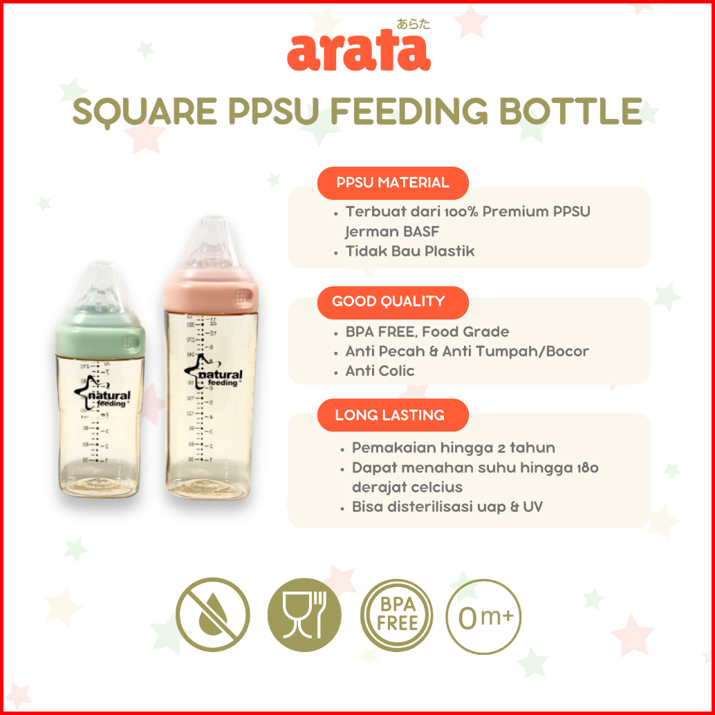 Arata Botol Susu Bayi Dot Baby Feeding Bottle Ppsu Wide Neck Anti Colic 150ml 240ml 330ml