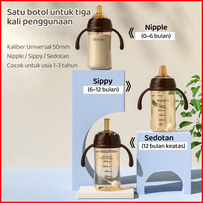 Minitutu Botol Susu Bayi Wide Neck Pp Nano Perak Botol Susu 3 In 1 Puting Susu Gravity Ball Anti Kolik 240ml 300ml Bebas