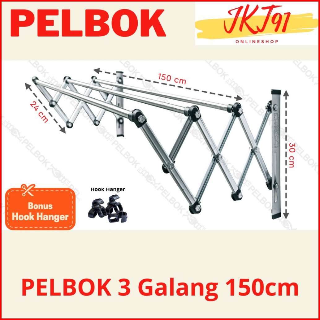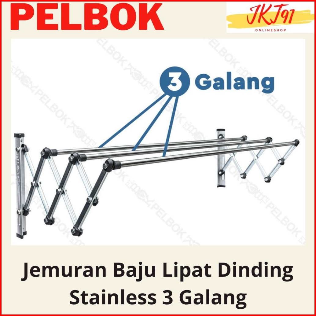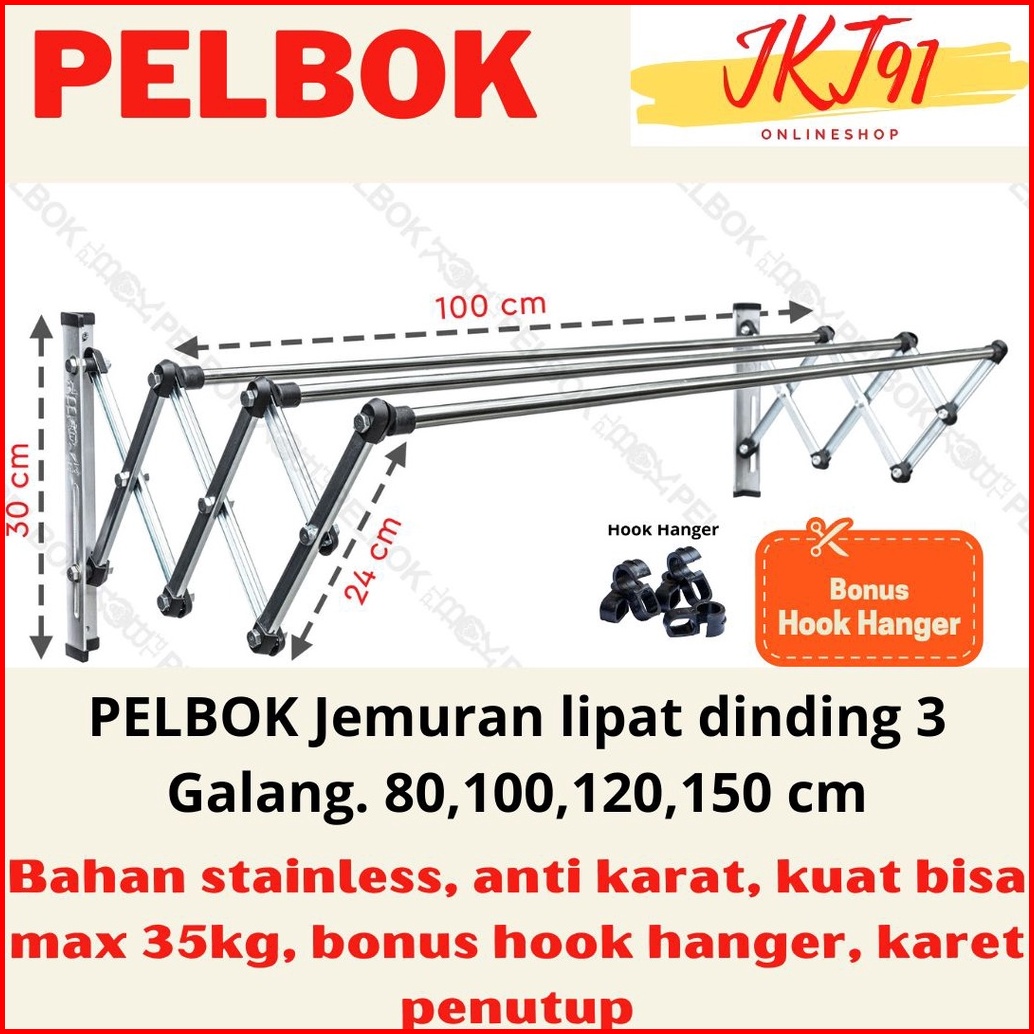 Plbok Single Jemuran Baju Pakaian Dinding Lipat Stainless Steel Rak Jemuran 80 100 120 150