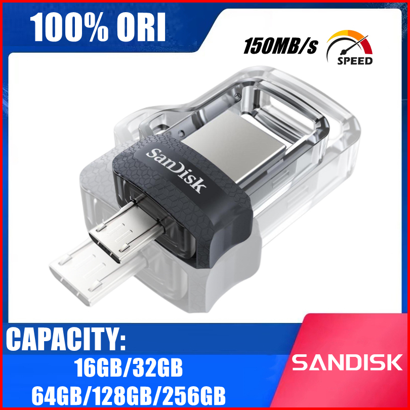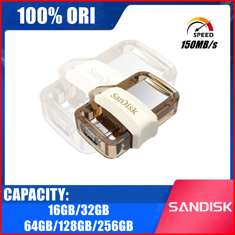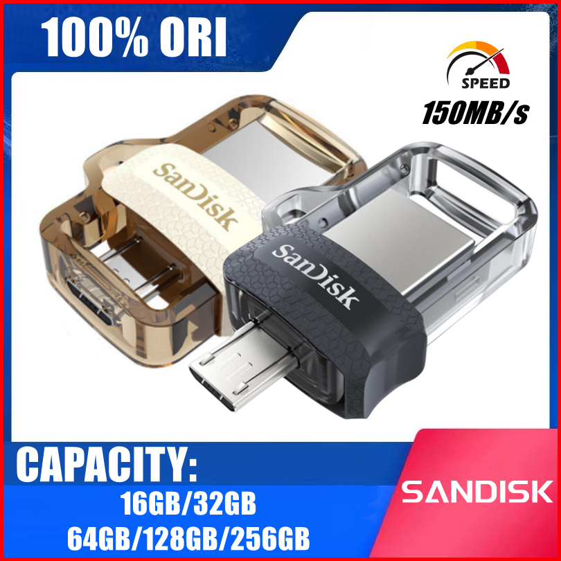 Ultra Dual Drive Otg 16gb 32gb 64gb 128gb 256gb Flashdrive Transmisi 150m S M3.0 Flash Drive Storage Eksternal- Hitam