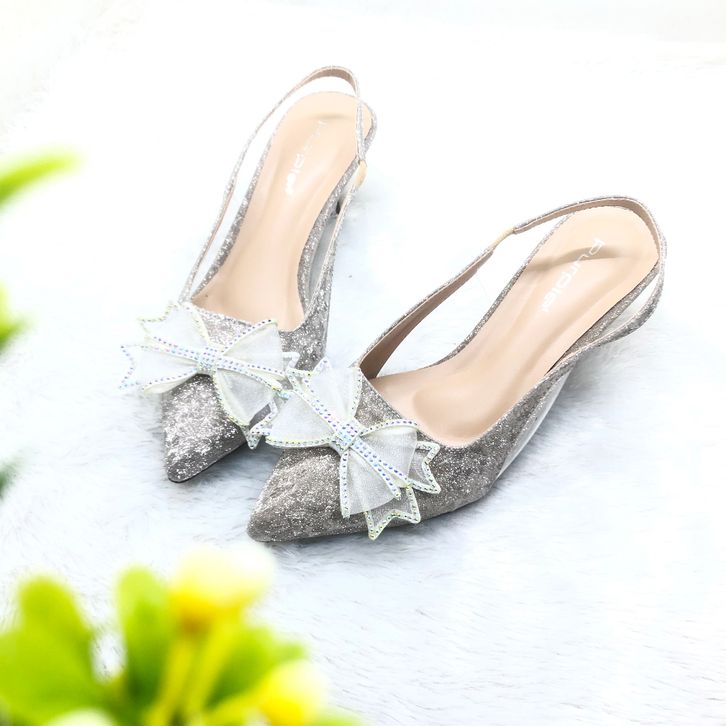 Sandal Pesta Hak 5 cm Elegan dengan Pita Kupu kupu Series Purple Shoes