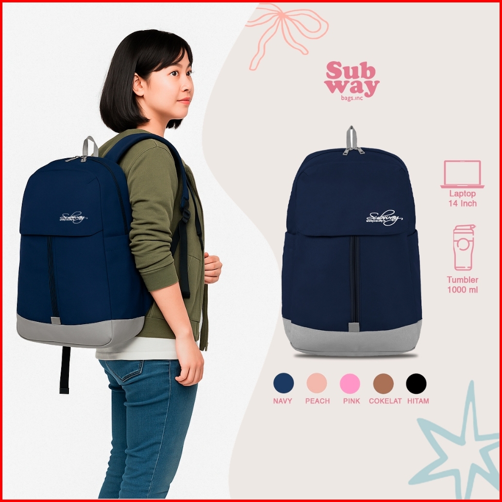 Subway - Tas Ransel Wanita Backpack Kuliah Kerja Free Rain Cover - Joey S 22021