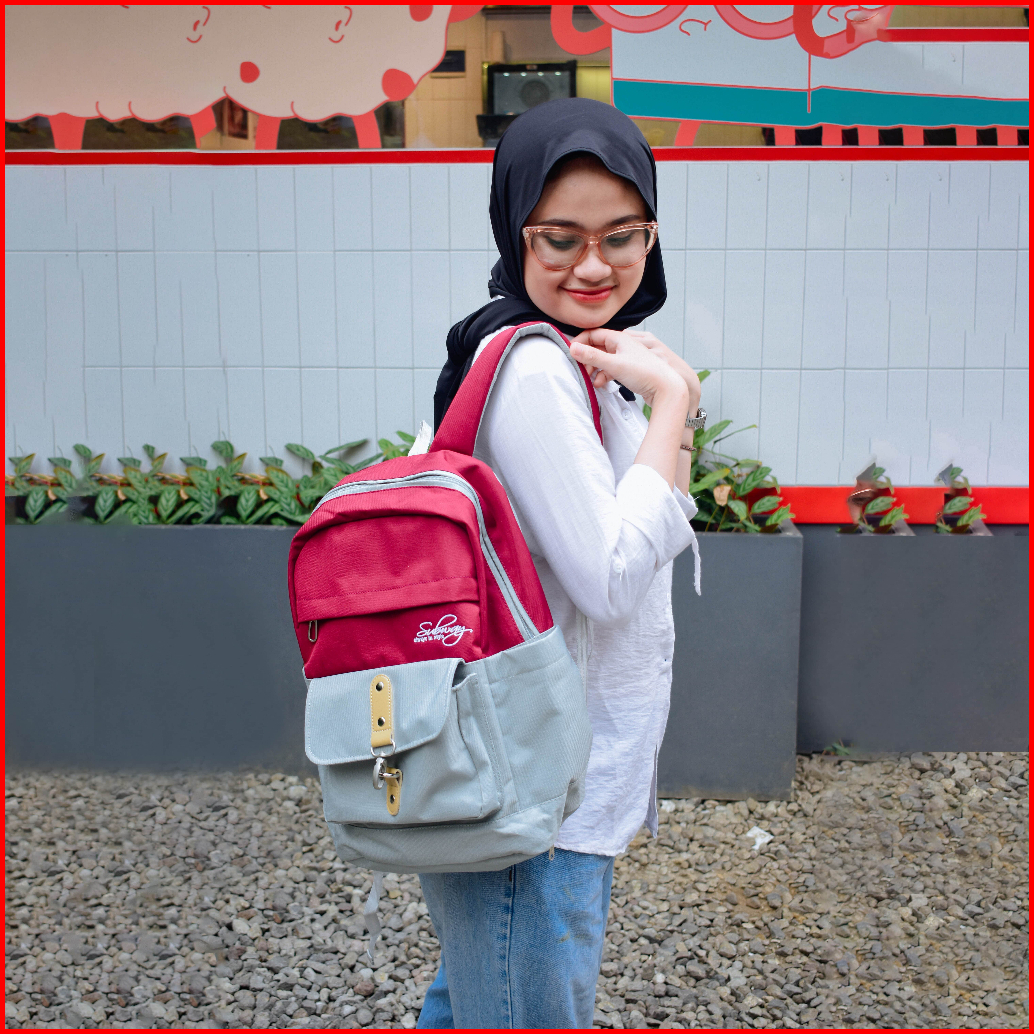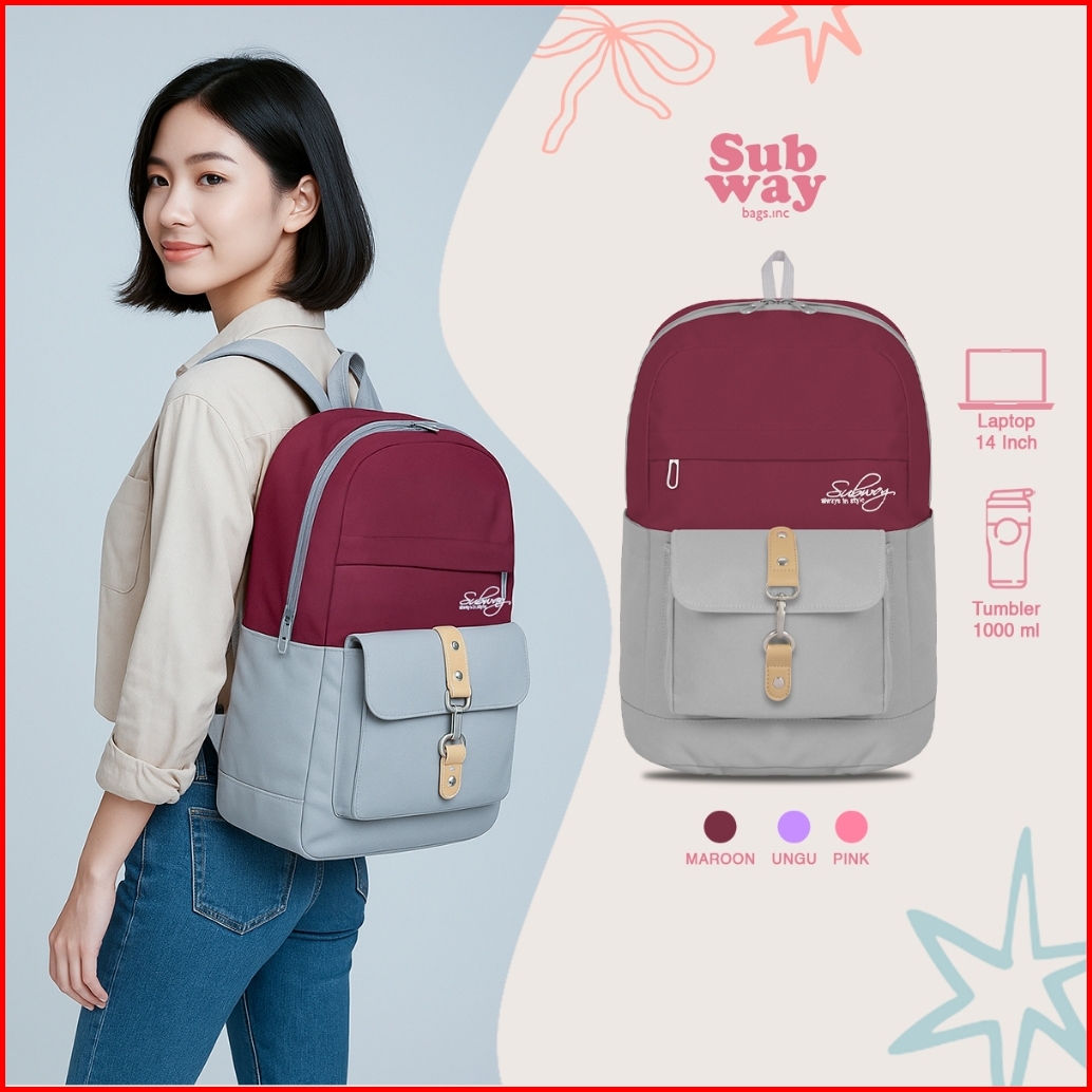Subway - Tas Ransel Wanita Backpack Kuliah Kerja Free Rain Cover - Nova 22039
