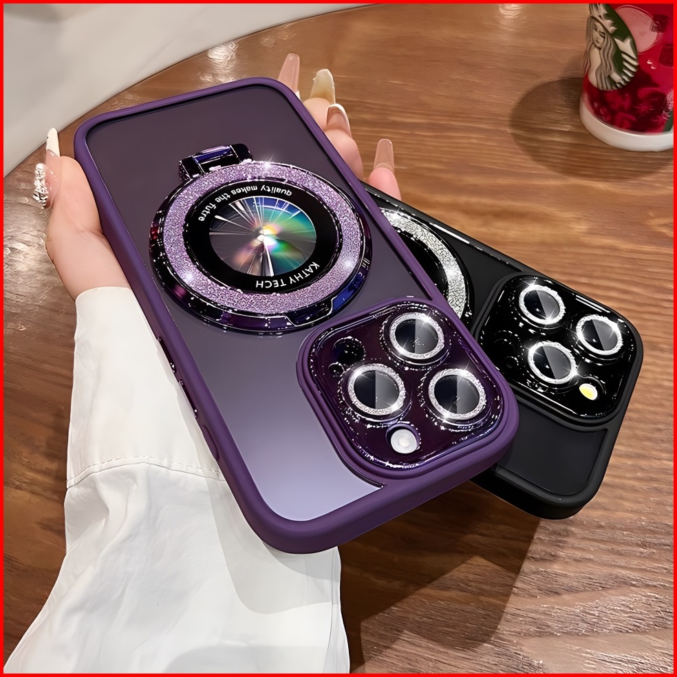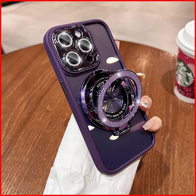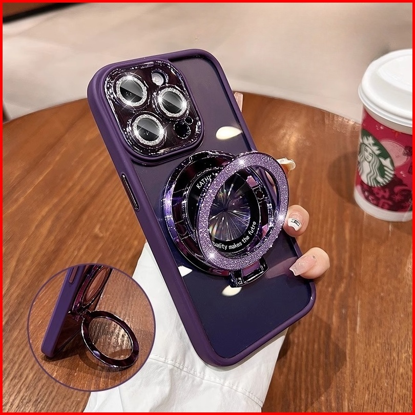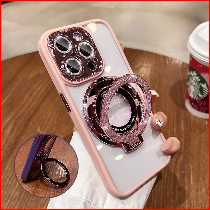 New Pengisian Magnetik Warna Premium Luxury Plating Diamond-set Case For Iphone 11 12 13 14 15 Pro Max Magsafe Stand Bea
