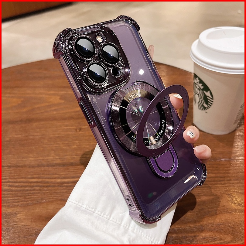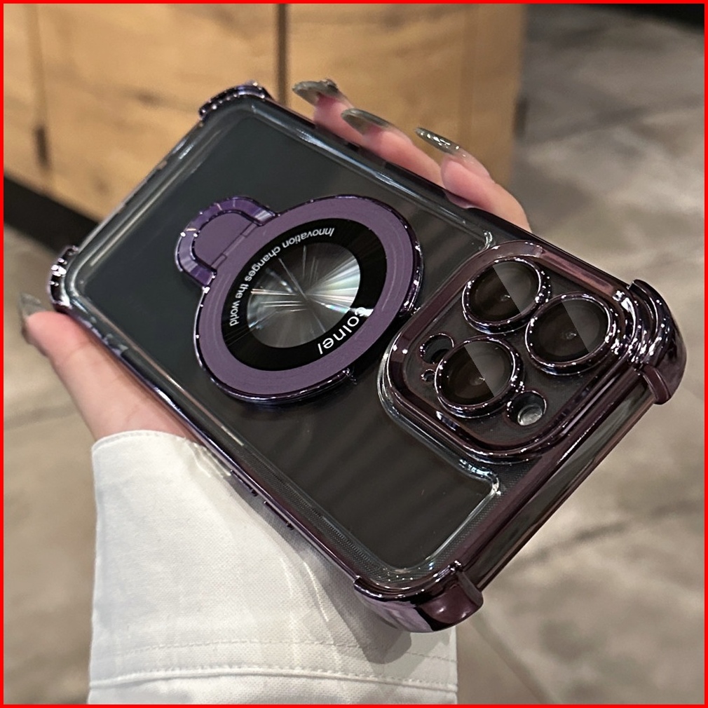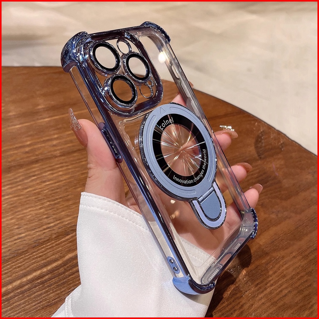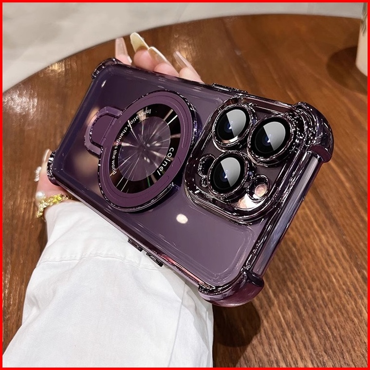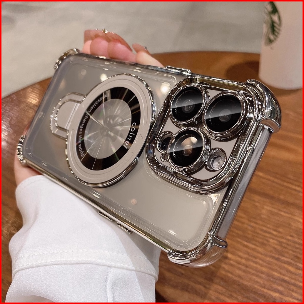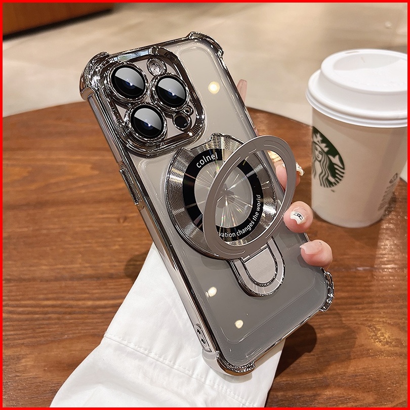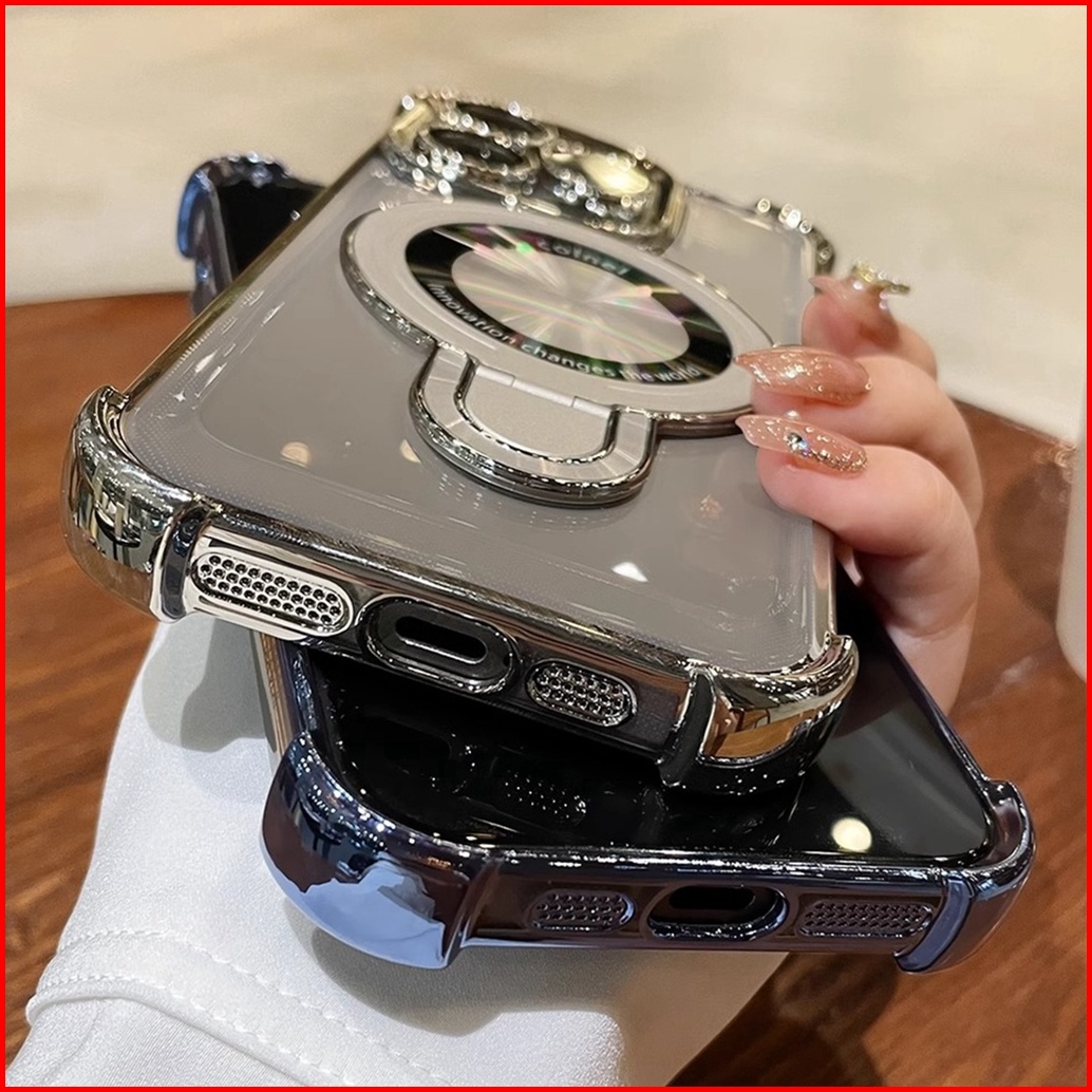 Premium Plating Thickened Airbag Magsafe Stand Case For Iphone 15 14 13 12 11 Pro Max Transparent Casing Iphone 15 13 14