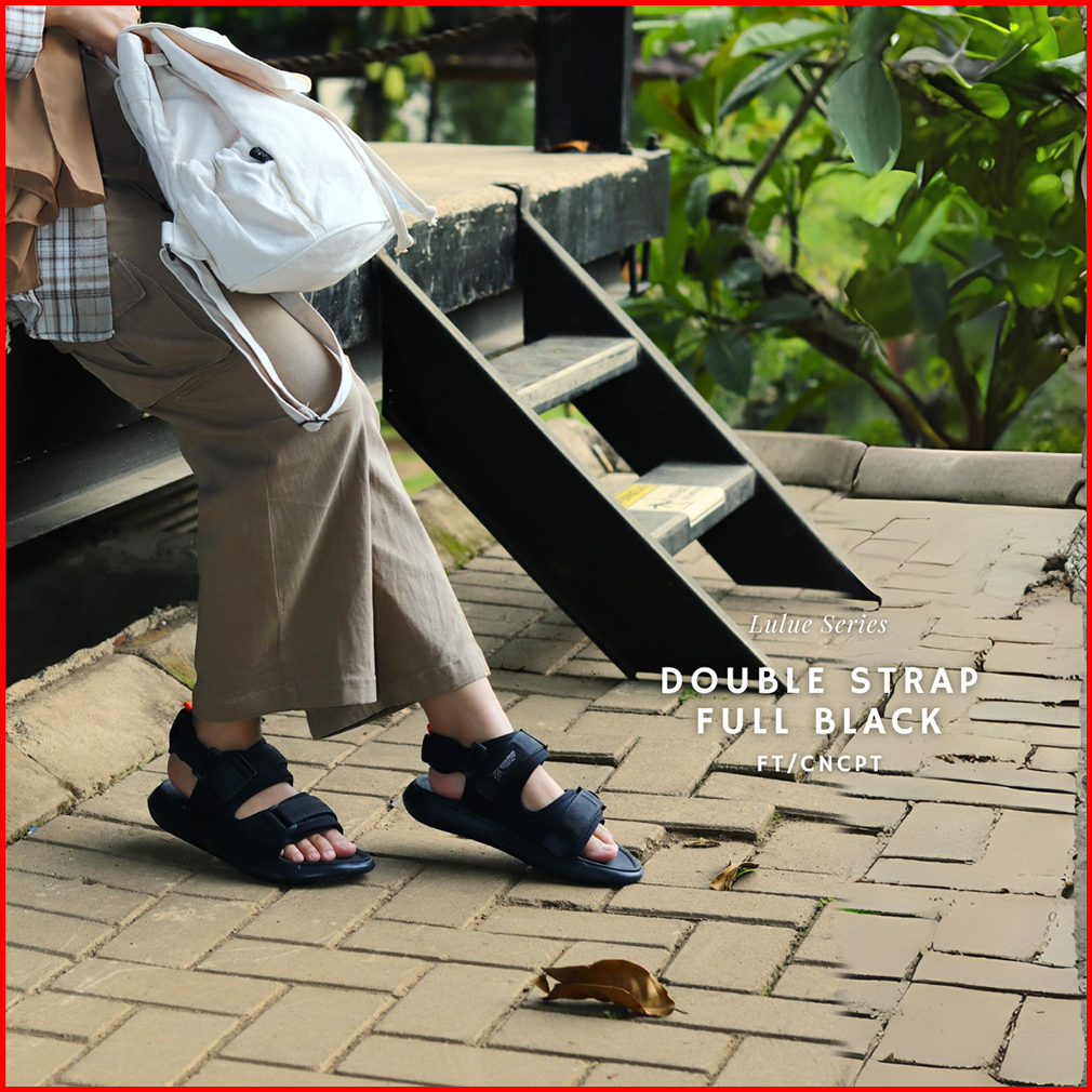 Footconcept Sandal Kasual Gunung Pria Wanita Kekinian Fullblack Lulue Series 36-44