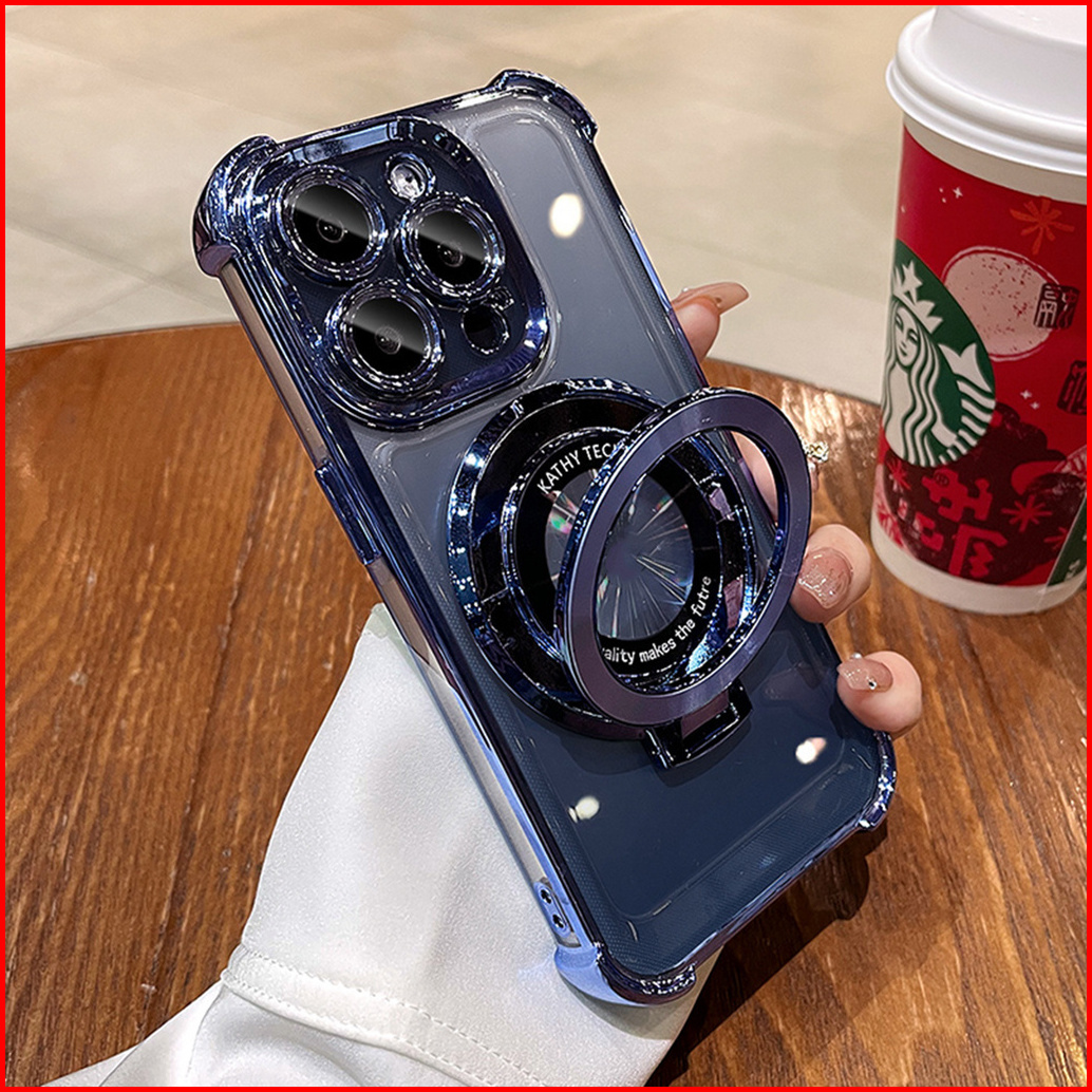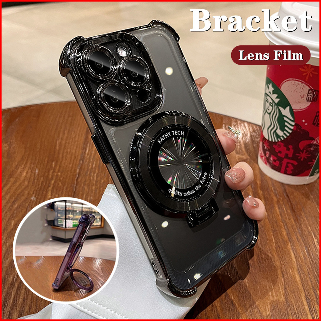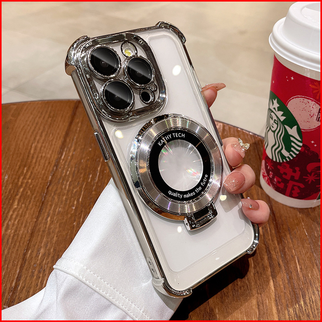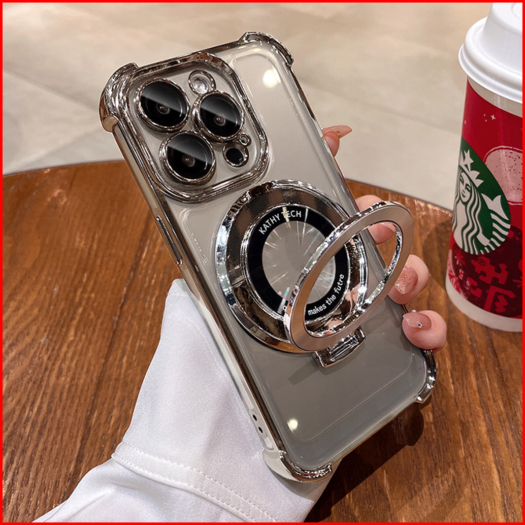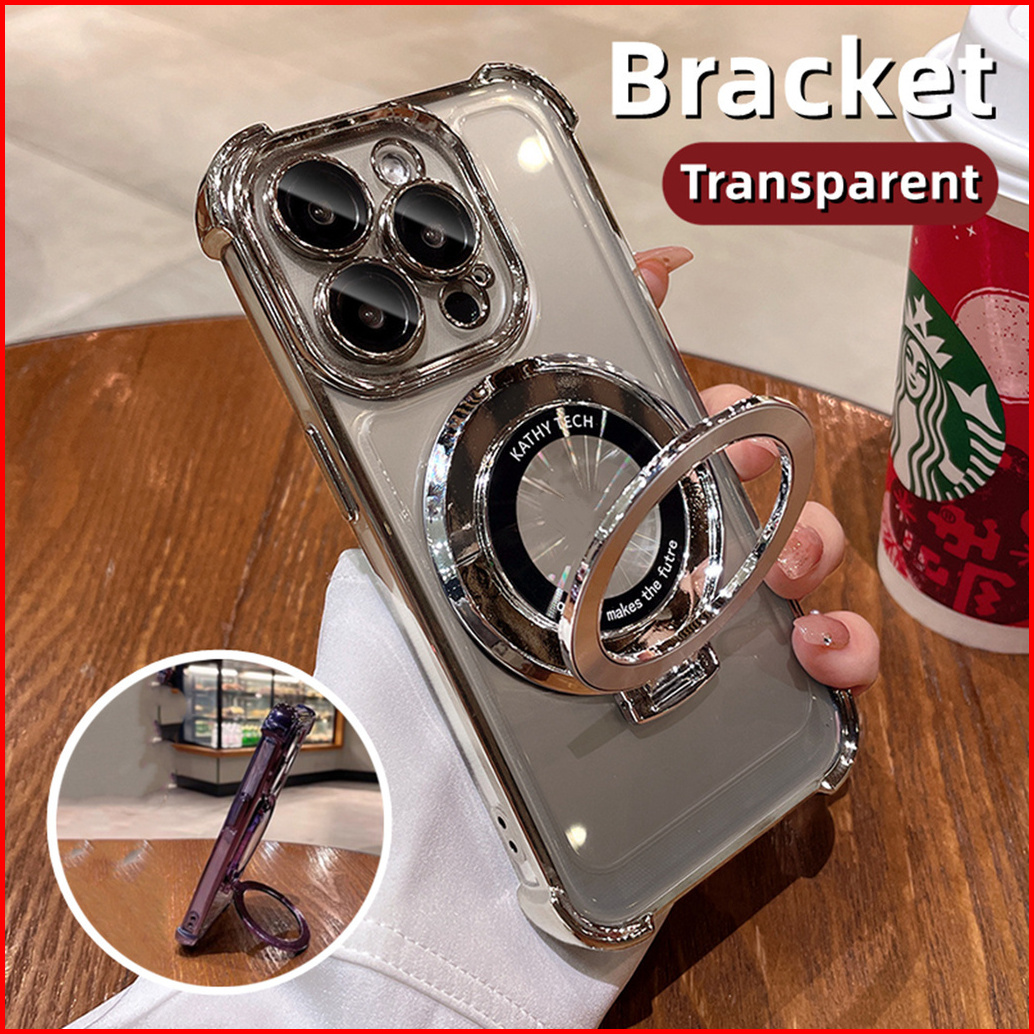 New Premium Plating Bracket Thickened Airbag Magsafe Stand Case For Iphone 15 14 13 12 11 Pro Max Transparent Casing Iph