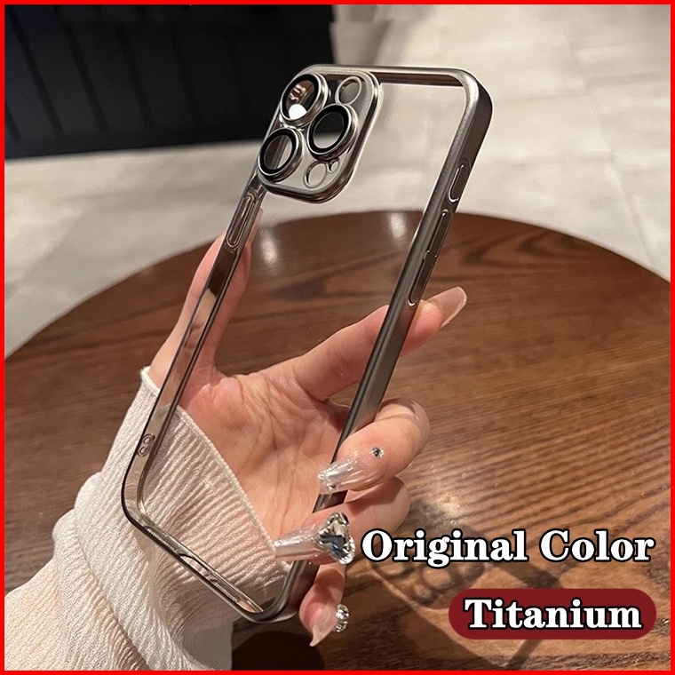 New Luxury Natural Titanium Phone Case For Iphone 13 14 15 Pro Max Matte Clear Plating Casing Transparent Shockproof Cov