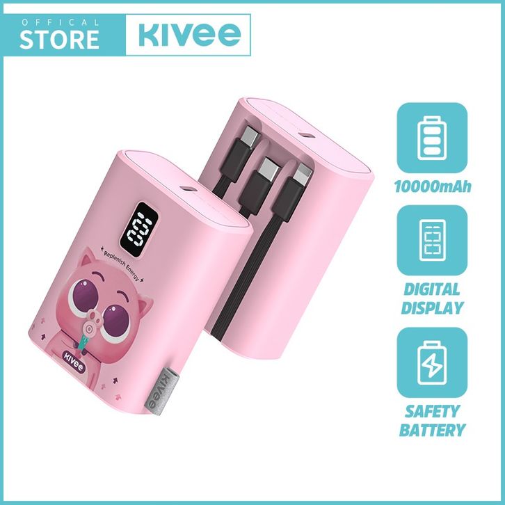 KIVEE Powerbank mini Fast charging 10000 mAh Power bank Type c imut-imut with data cable For iphone