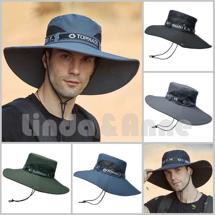 Topi Cowok Bucket Hat Tali Topi Pria Musim Panas Perlindungan Matahari Topi Visor Pria Topi Outdoor Fashion Import