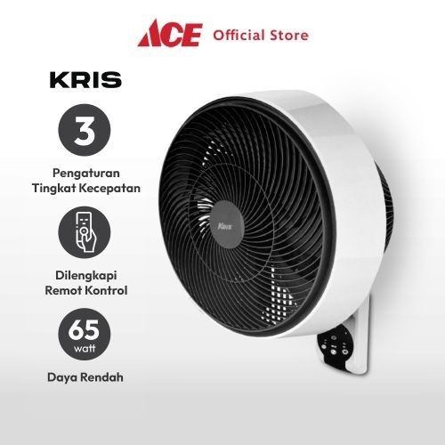 Ace Kris Kipas Angin Dinding Dengan Remote 65 Watt - Putih Wall Fan Penyejuk Ruwangan Kipas Baling Baling Elektronik Ru