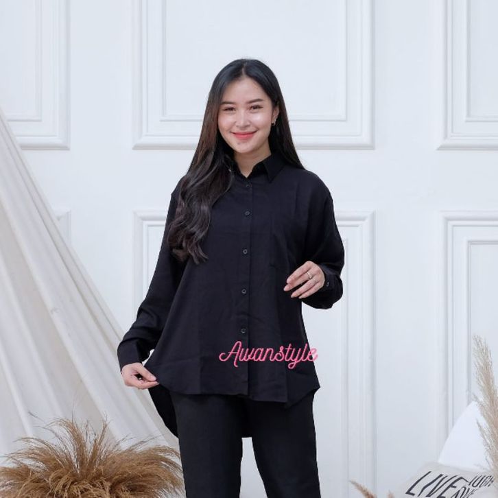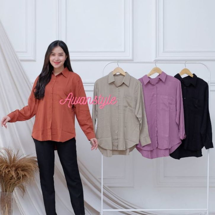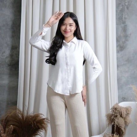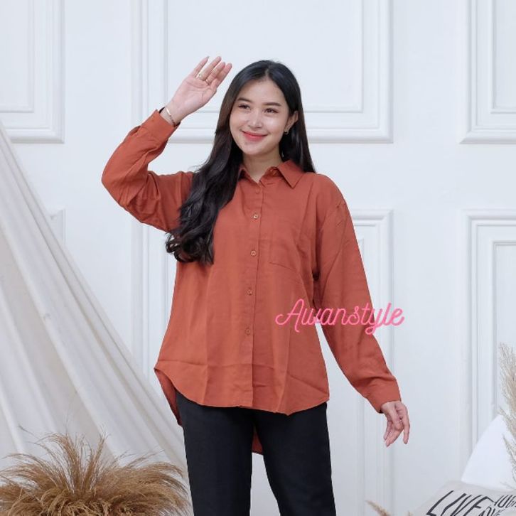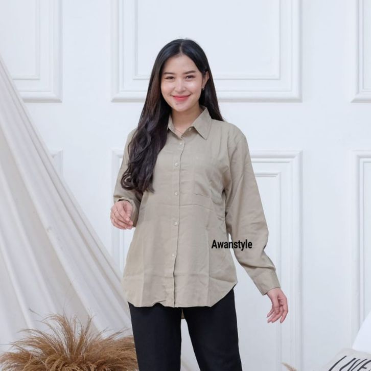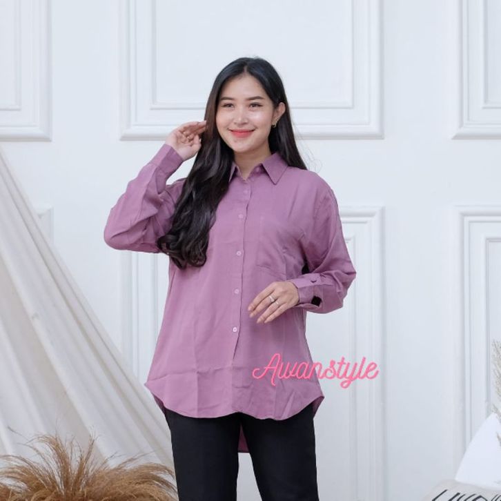 Kemeja Wanita Terbaru Dan Kekinian Rayon Twill Premium Jumbo Putih Oversize Import Bangkok Lengan Panjang Gratis Ongkir