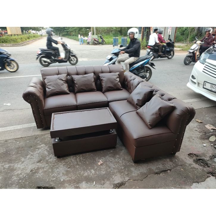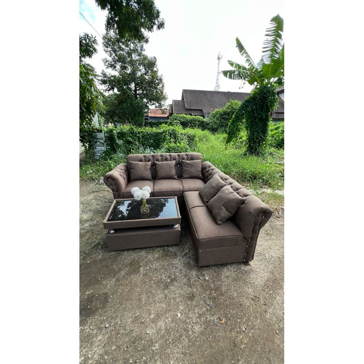 Melvi Sofa Ruang Tamu Minimalis Mewah Murah Terbaru Sofa L Sudut Free Meja, Kursi Tamu Elegan Minimalis