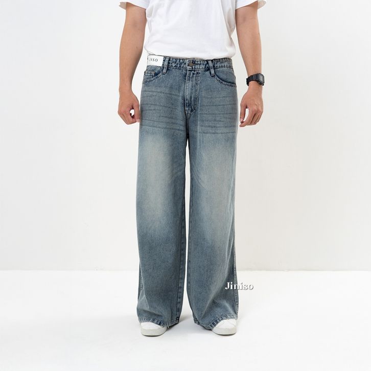 JINISO Oversize Baggy Jeans Pria Loose Jeans Cowok Celana Jeans Pria Jumbo Gombrong Street Style Original